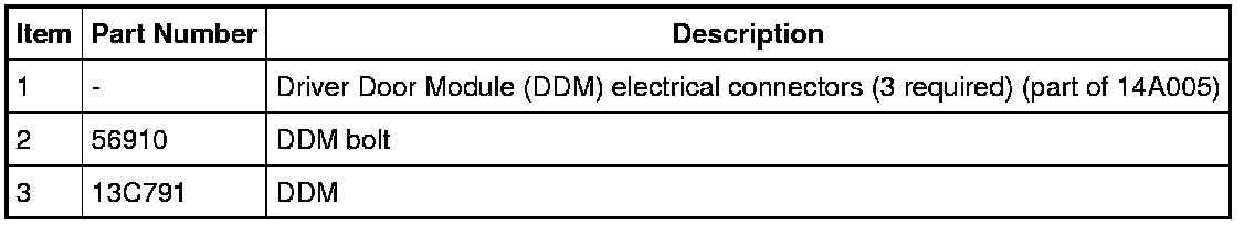 NOTE: Prior to the replacement of the Driver Door Module (DDM), it is necessary to upload the module configuration information to the Integrated Diagnostic System (IDS). This information must be downloaded into the new DDM after installation.