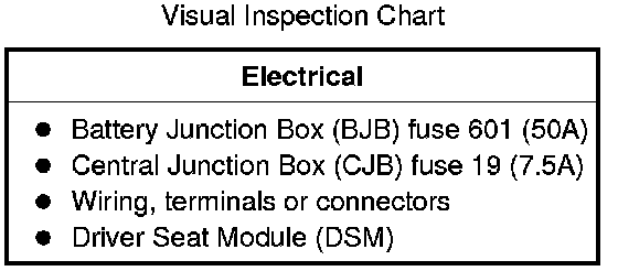 8. Clear the continuous DTCs and carry out the self-test diagnostics for the Driver Seat Module (DSM).