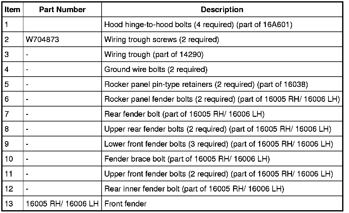 12. NOTE: The wire harness trough is only located on the LH fender.