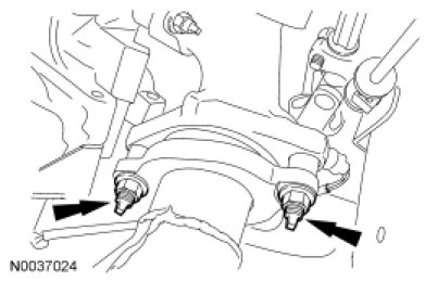 1. Position the LH side of the transmission support crossmember into the transmission support crossmember pocket and loosely install the bolts.