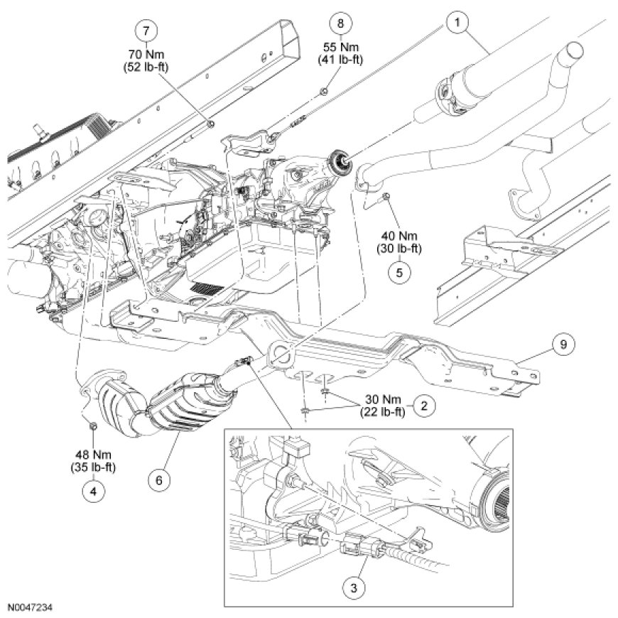 10. Tighten the RH catalytic converter-to-exhaust pipe bolts.