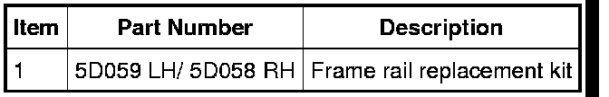 9. NOTE: Observe prescribed welding procedures when carrying out frame rail service kit replacement. For additional information, refer to Welding Precautions - Steel .