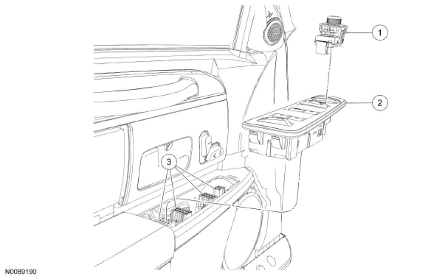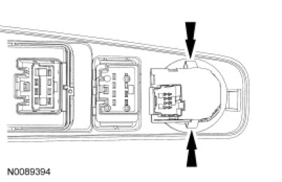 2. Release the 2 exterior mirror control switch locking tabs and remove the exterior mirror control switch.