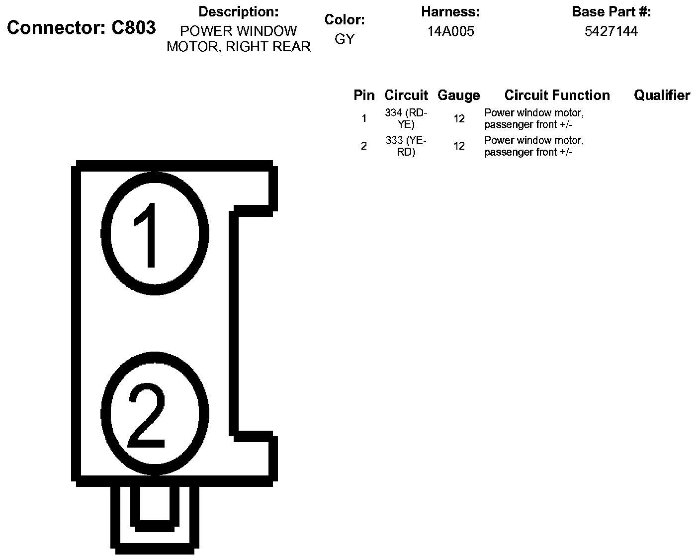 Power Window Motor, Right Rear
