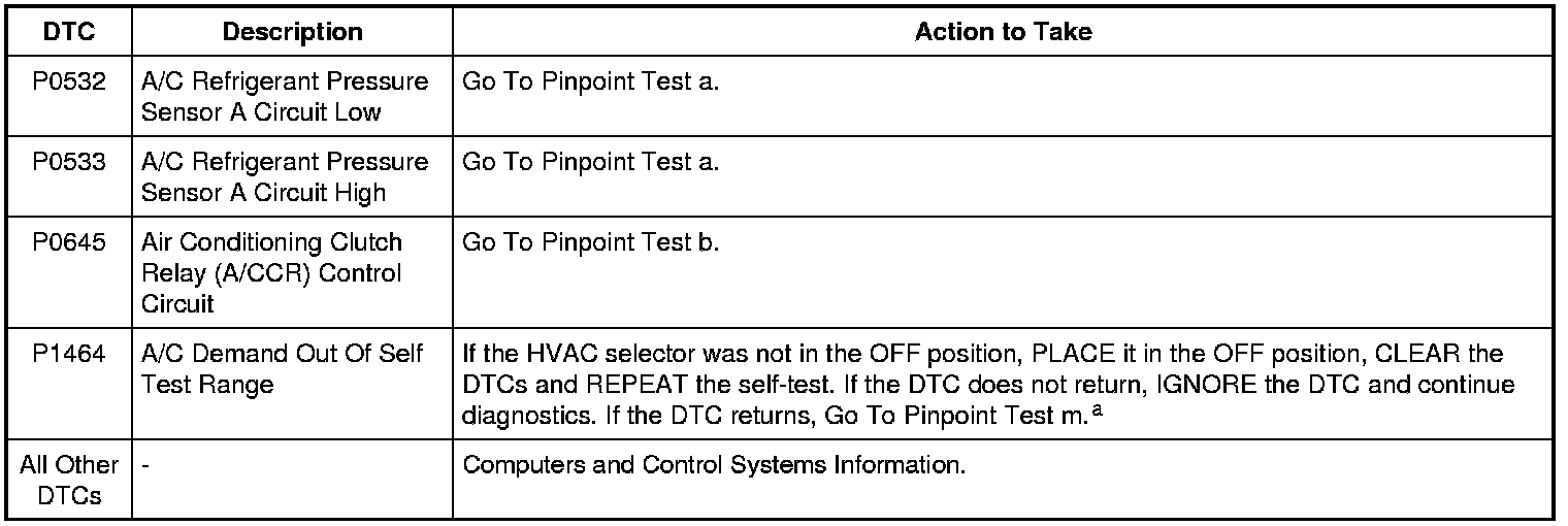 a PCM DTC P1464 will set if the function selector is in PANEL with A/C button pressed, DEFROST or MAX A/C mode when the on-demand self-test is being run.