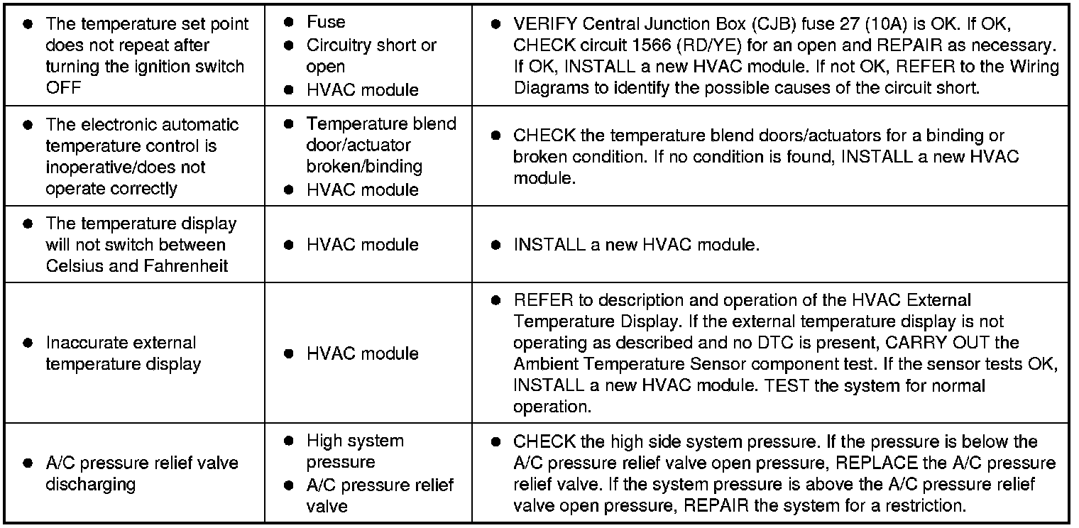 Climate Control SystemSymptom Chart - Climate Control SystemsSymptom Chart - Climate Control Systems (Part 1):