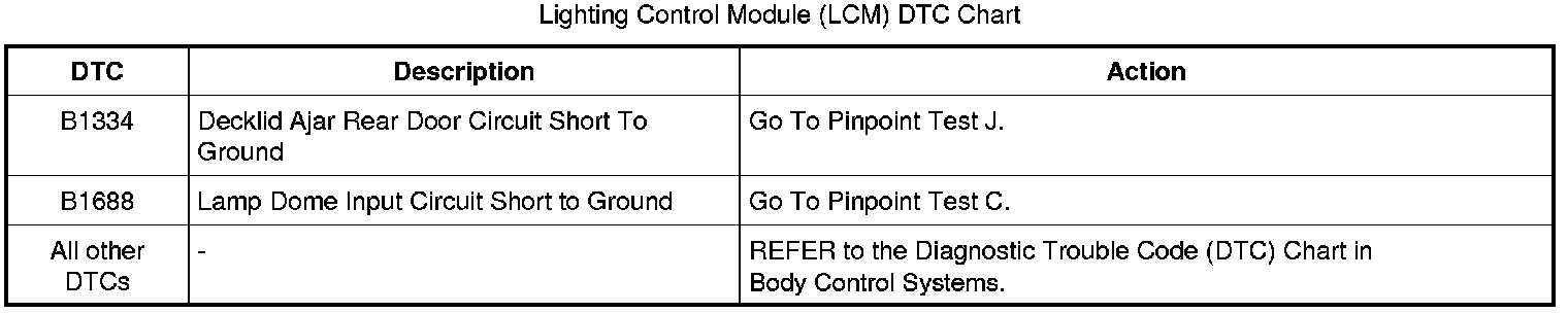 Lighting Control Module (LCM) DTC Chart