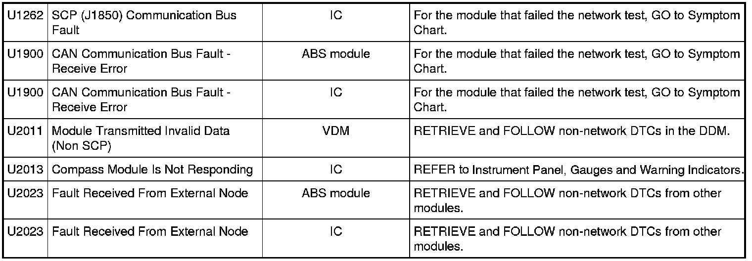 NOTE: Network DTCs (U-codes) are often a result of intermittent concerns such as faulty wiring or low battery voltage occurrences. Additionally, vehicle service procedures such as module reprogramming will often set network DTCs. Replacing a module to resolve a network DTC is unlikely to resolve the concern. To prevent repeat network DTC concerns, inspect all network wiring, especially connectors. Test the vehicle battery, refer to Battery.