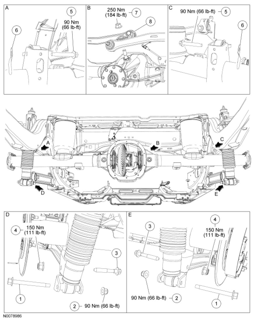 15. Unseat the air springs and lower the rear axle from the vehicle.
