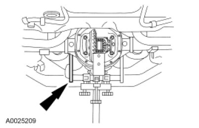 Raise the rear axle into position, using a suitable transmission jack.