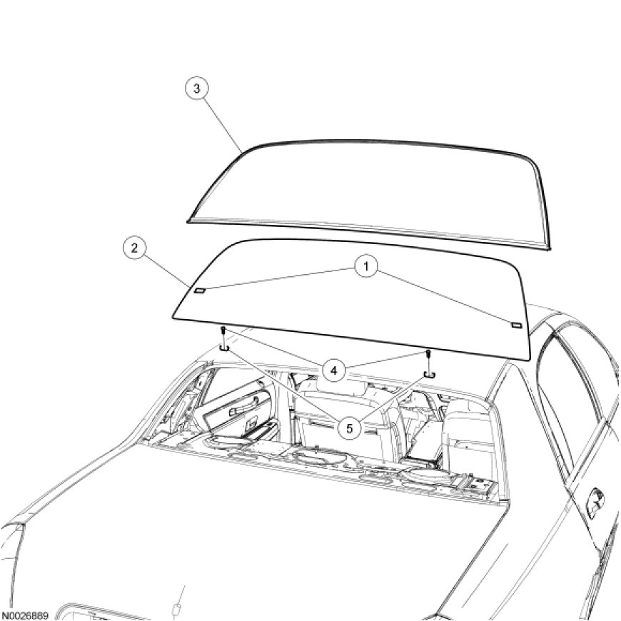 NOTICE: Before positioning the rear window glass, open vehicle windows to prevent the air pressure of closing doors from affecting the adhesive bond.