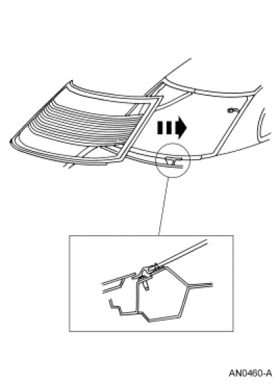 NOTE: Avoid scratching the pinch weld. Repair all minor scratches or exposed metal on the pinch weld following manufacturer's instructions. Use the same brand pinch weld primer, glass primer and urethane adhesive.