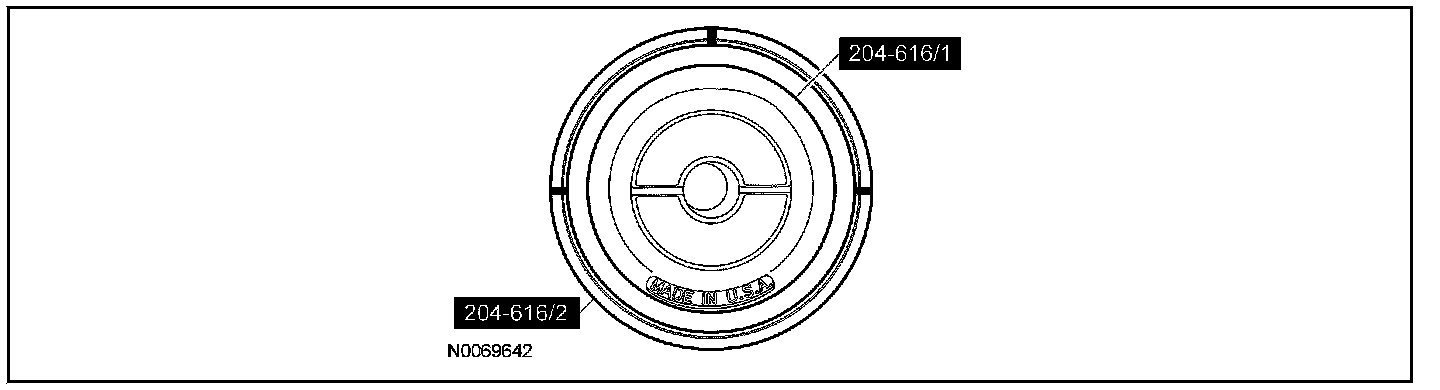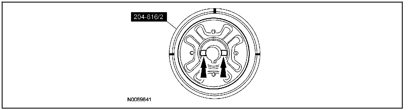 2. NOTE: Make sure the alignment marks are properly aligned on both the Rear Drive Unit (RDU) Bushing (70 mm) Remover/Installer 204-616/1 and Rear Drive Unit (RDU) Bushing (70 mm) Remover/Installer 204-616/2 and the anti-rotation tabs are properly seated in the Rear Drive Unit (RDU) Bushing (70 mm) Remover/Installer 204-616.
