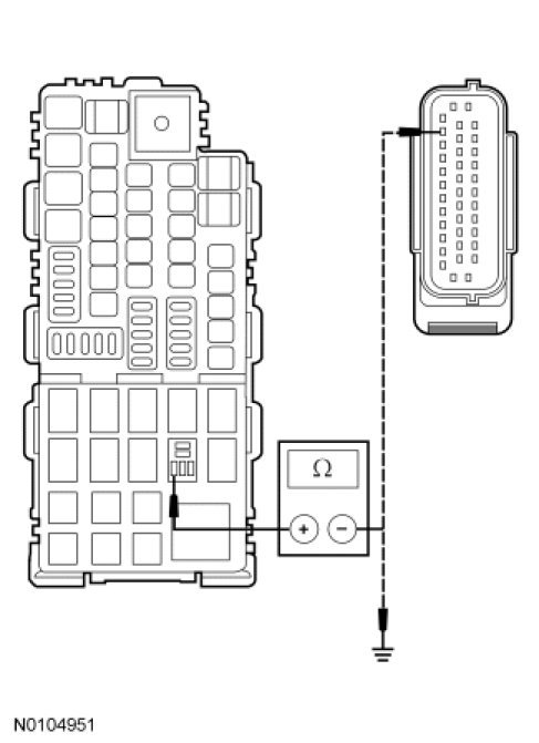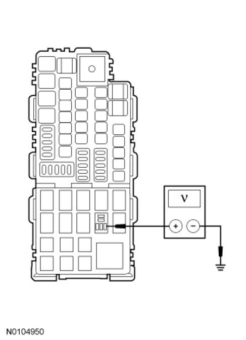 - Measure the voltage at the adaptive cruise (stoplamps) relay, pin 2, Battery Junction Box (BJB) face side and ground.