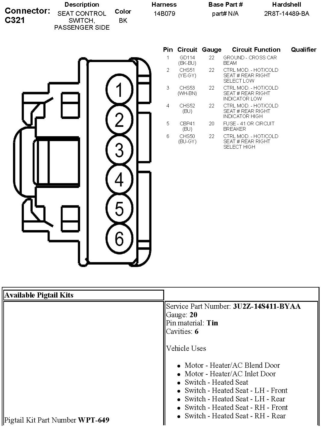 Seat Control Switch, Passenger Side