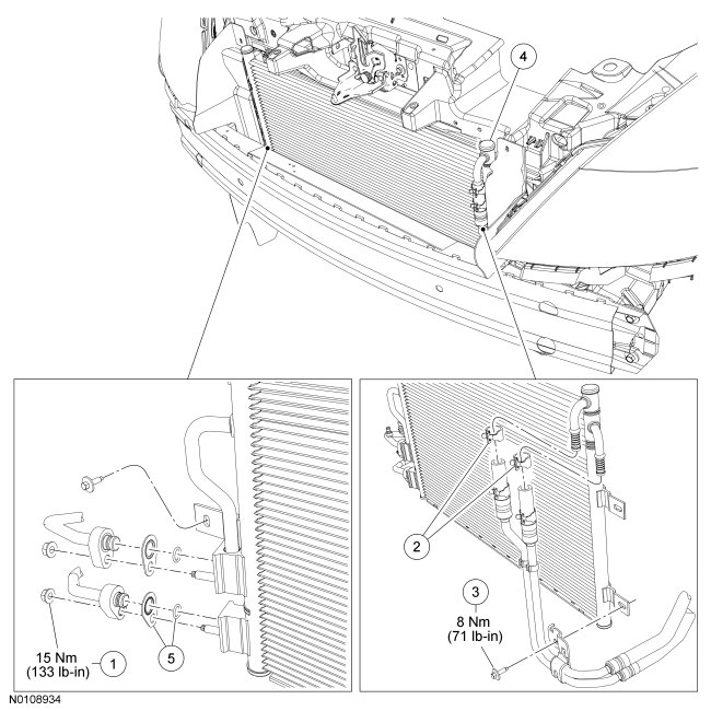 6. Remove the 2 condenser fitting nuts and disconnect the fittings.