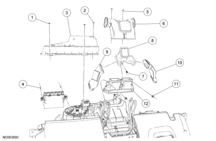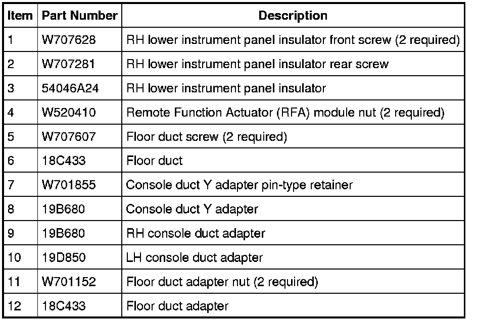 9. Remove the RH and LH console duct adapters.