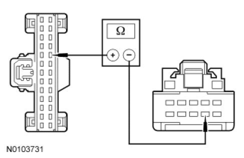 - Vehicles with navigation: Measure the resistance between IC C220-18, circuit CCA15 (YE/GY), harness side and FCIM C2403-7, circuit CCA15 (YE/GY), harness side.
