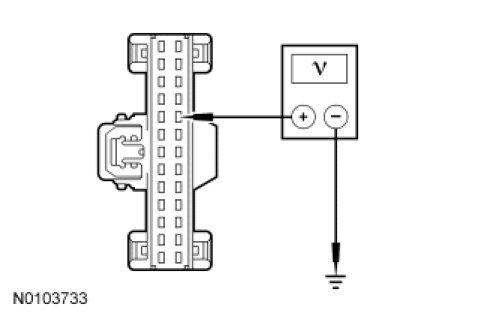 - Measure the voltage between IC C220-18, circuit CCA15 (YE/GY), harness side and ground.