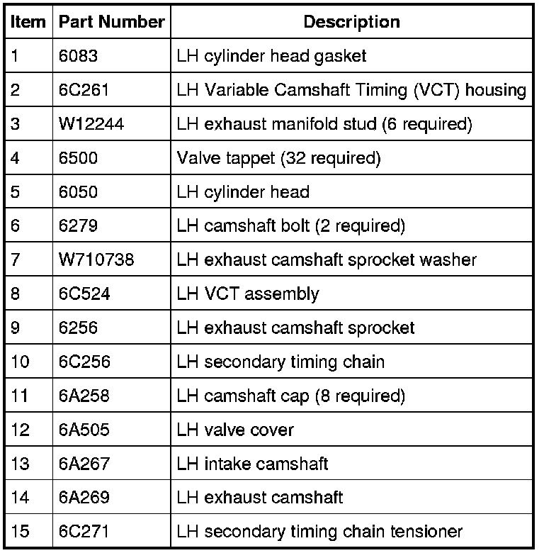 NOTE: On early build engines, the timing chain rides on the inner side of the RH timing chain guide. Late build engines are equipped with a different design RH timing chain guide that requires the timing chain to ride on the outer side of the RH timing chain guide. For service, all replacement RH timing chain guides will be the late build design.