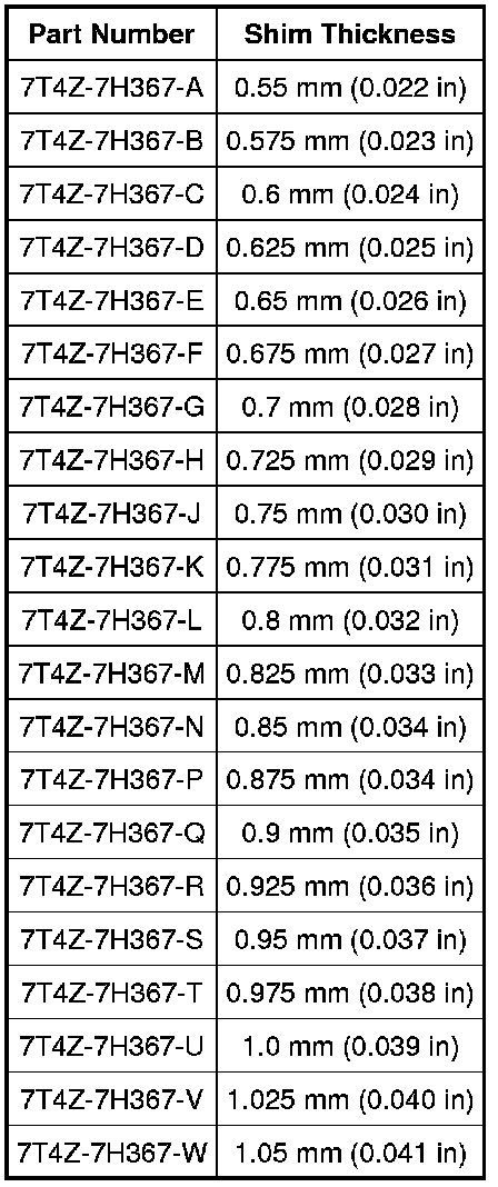 Transfer Gear Bearing Preload Shim Selection Chart