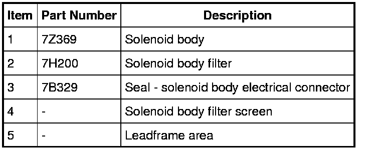 Remove the solenoid body filter assembly by pulling it straight up from the alignment tabs. Discard the filter.