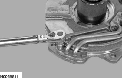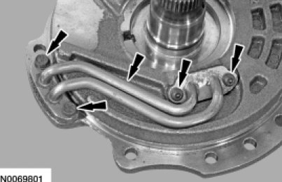 8. Tighten the 2 stator support feed tube Torx head bolts.