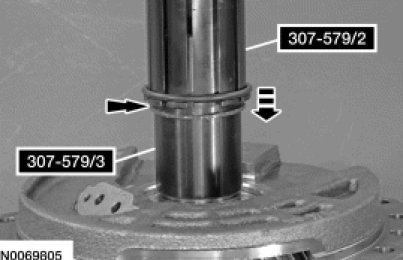 3. Install the Support Solid Seal Installer 307-579/2 on the Support Solid Seal Installer 307-579/3 and slide the seal in to the groove on the stator support assembly.