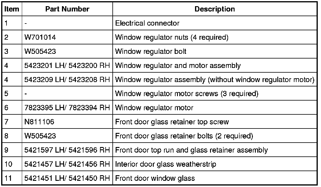 Glass, Frames and Mechanisms - Exploded View, Front Door