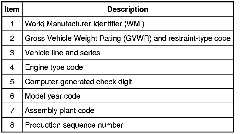 Positions 5 through 7 indicate vehicle line and series.