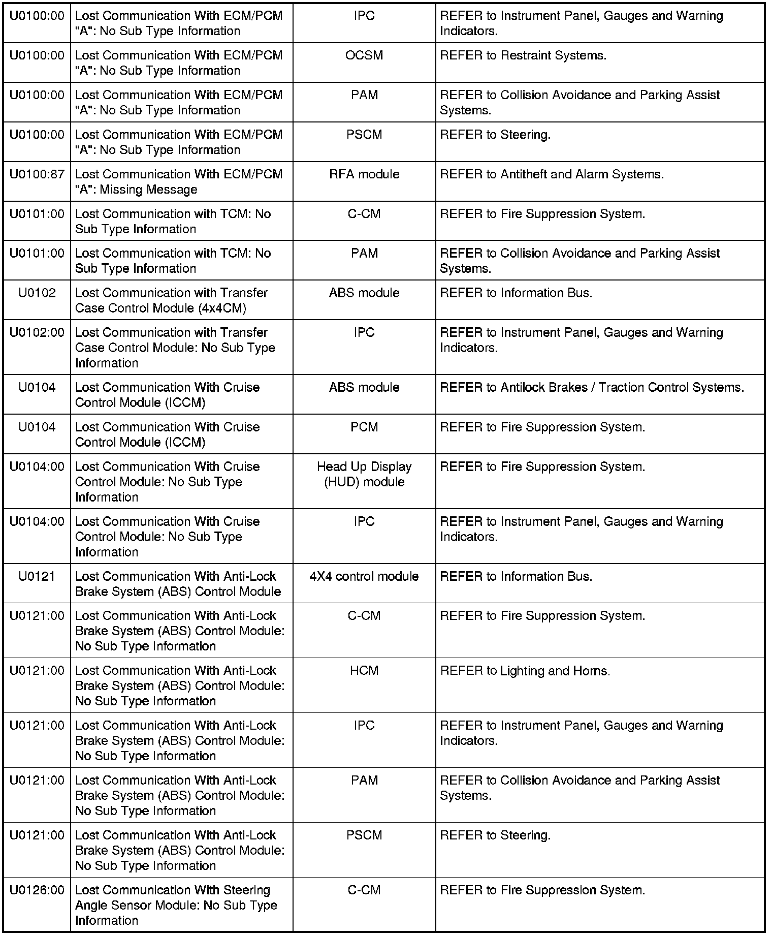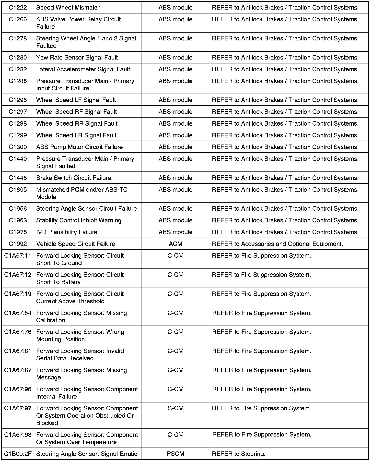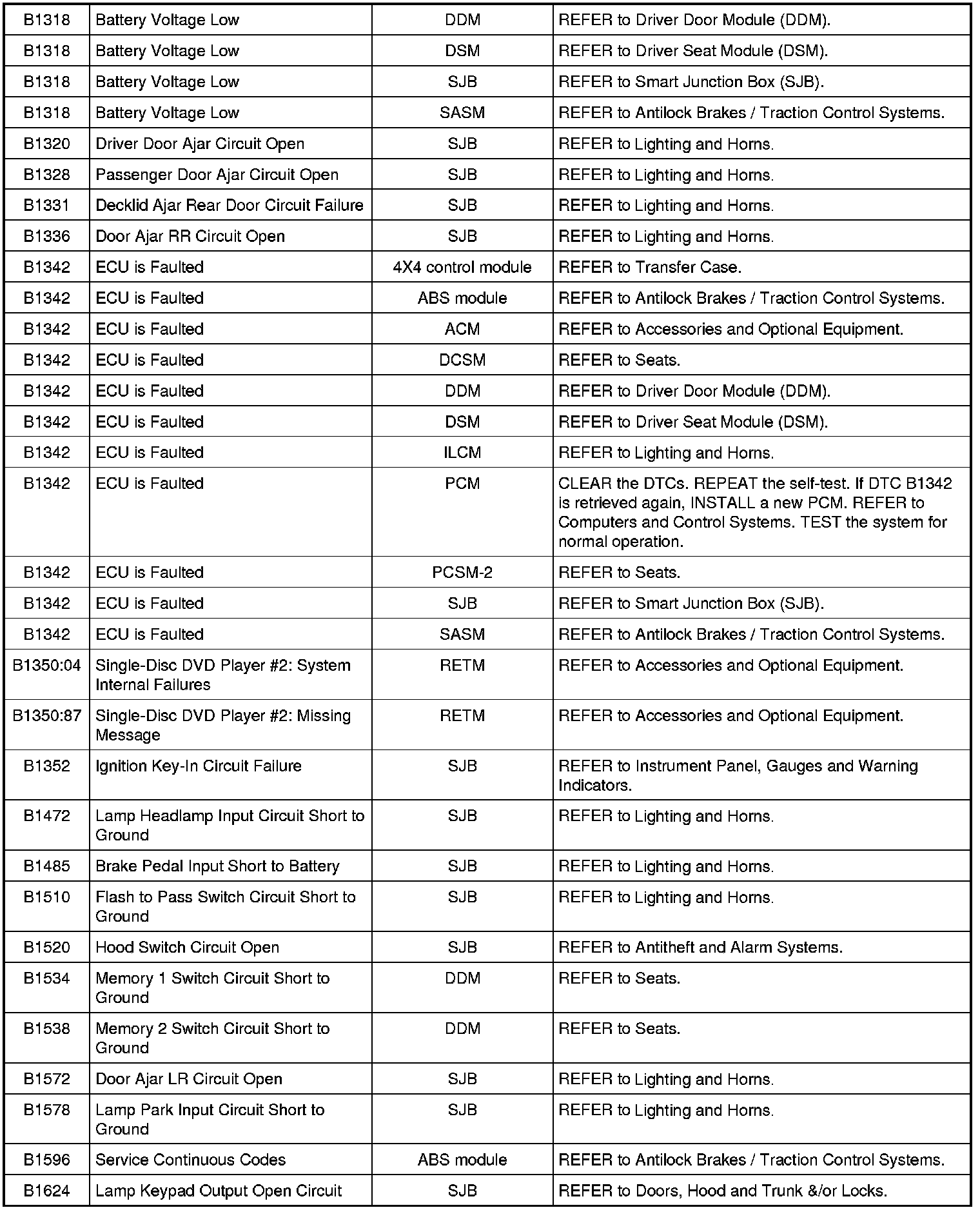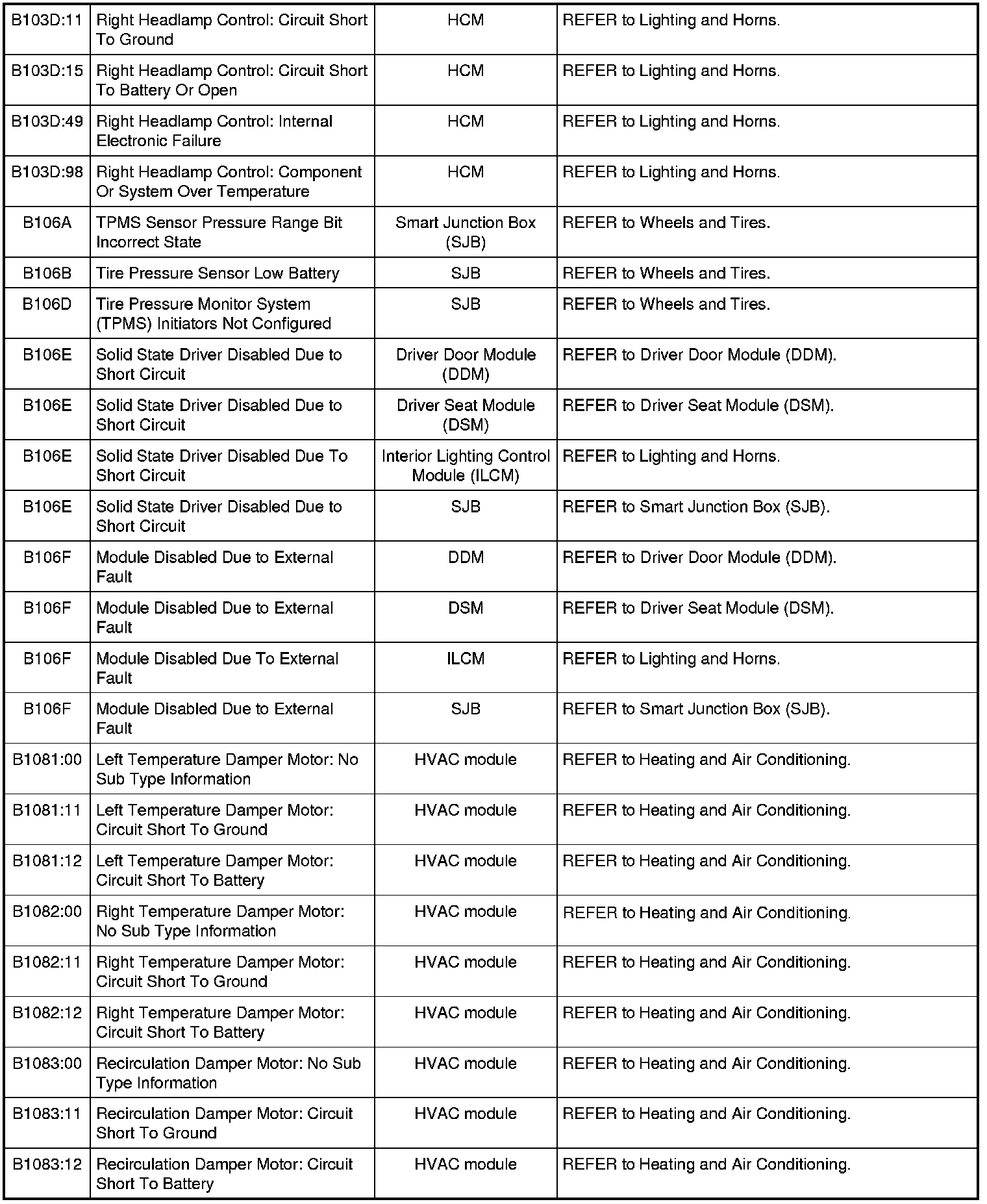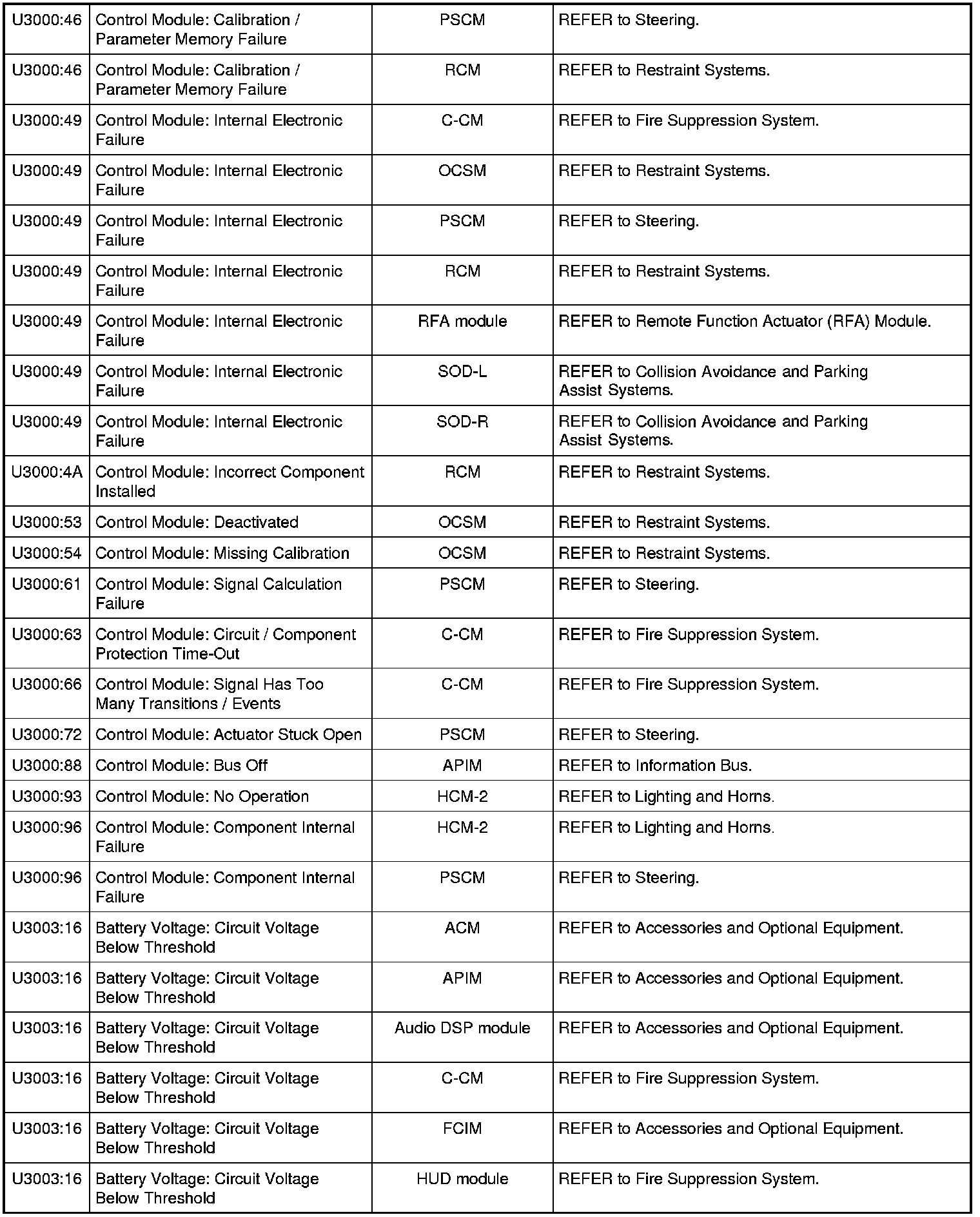 NOTE: Some of these modules utilize a 5-character DTC followed by a 2-character failure-type code. The failure-type code provides information about specific fault conditions such as opens, or shorts to ground. Continuous memory DTCs have an additional 2-character DTC status code suffix to assist in determining DTC history.