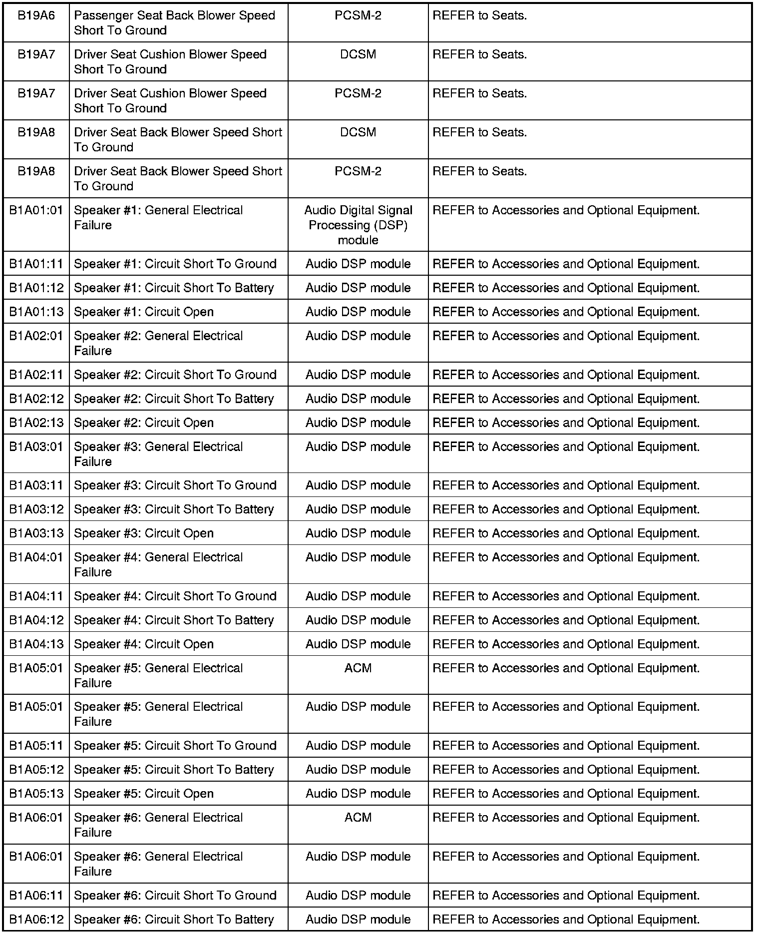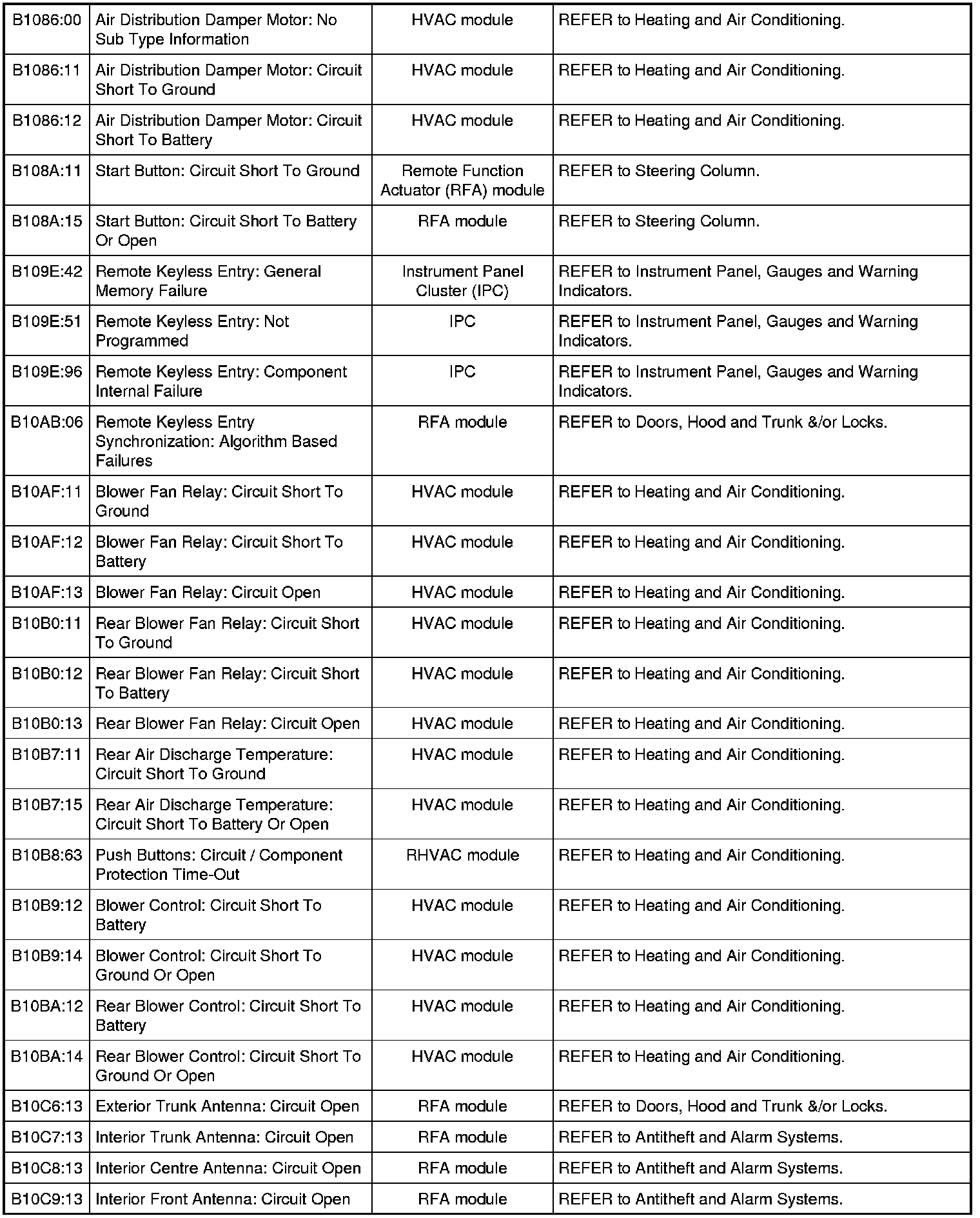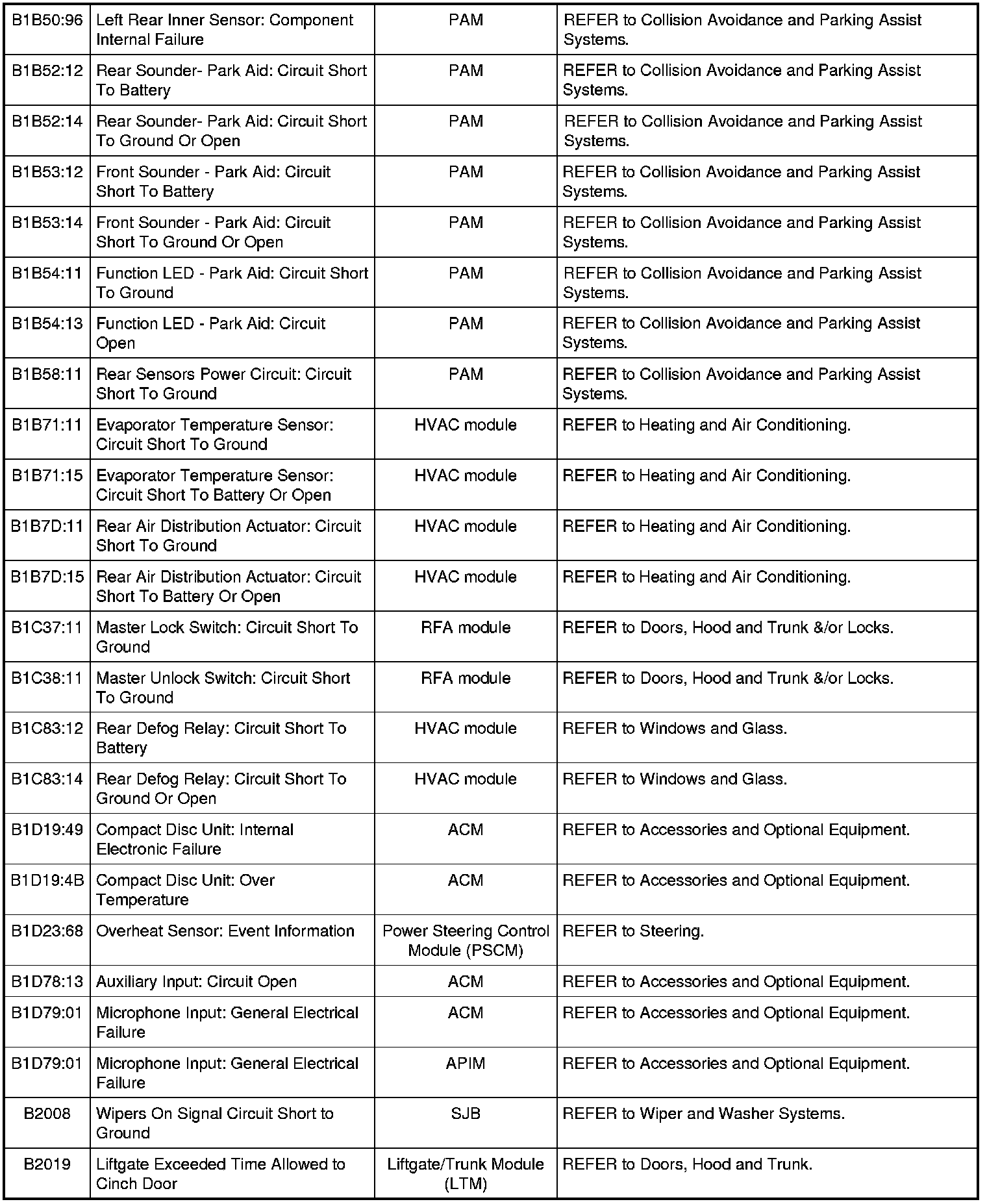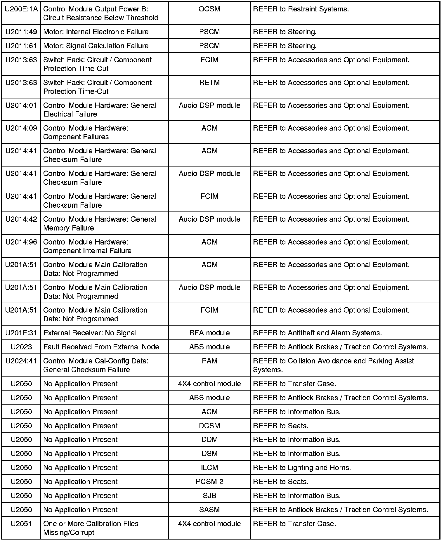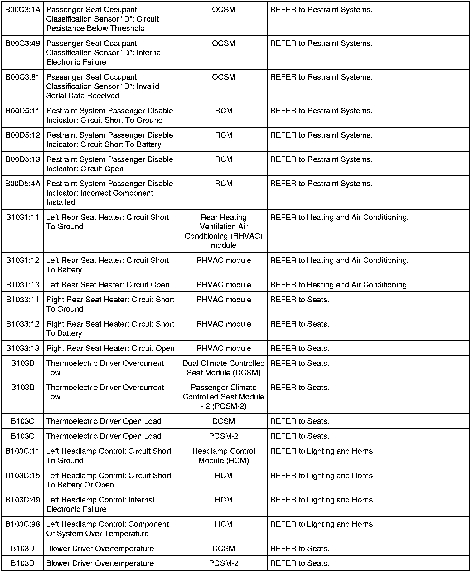 NOTE: Some of these modules utilize a 5-character DTC followed by a 2-character failure-type code. The failure-type code provides information about specific fault conditions such as opens, or shorts to ground. Continuous memory DTCs have an additional 2-character DTC status code suffix to assist in determining DTC history.