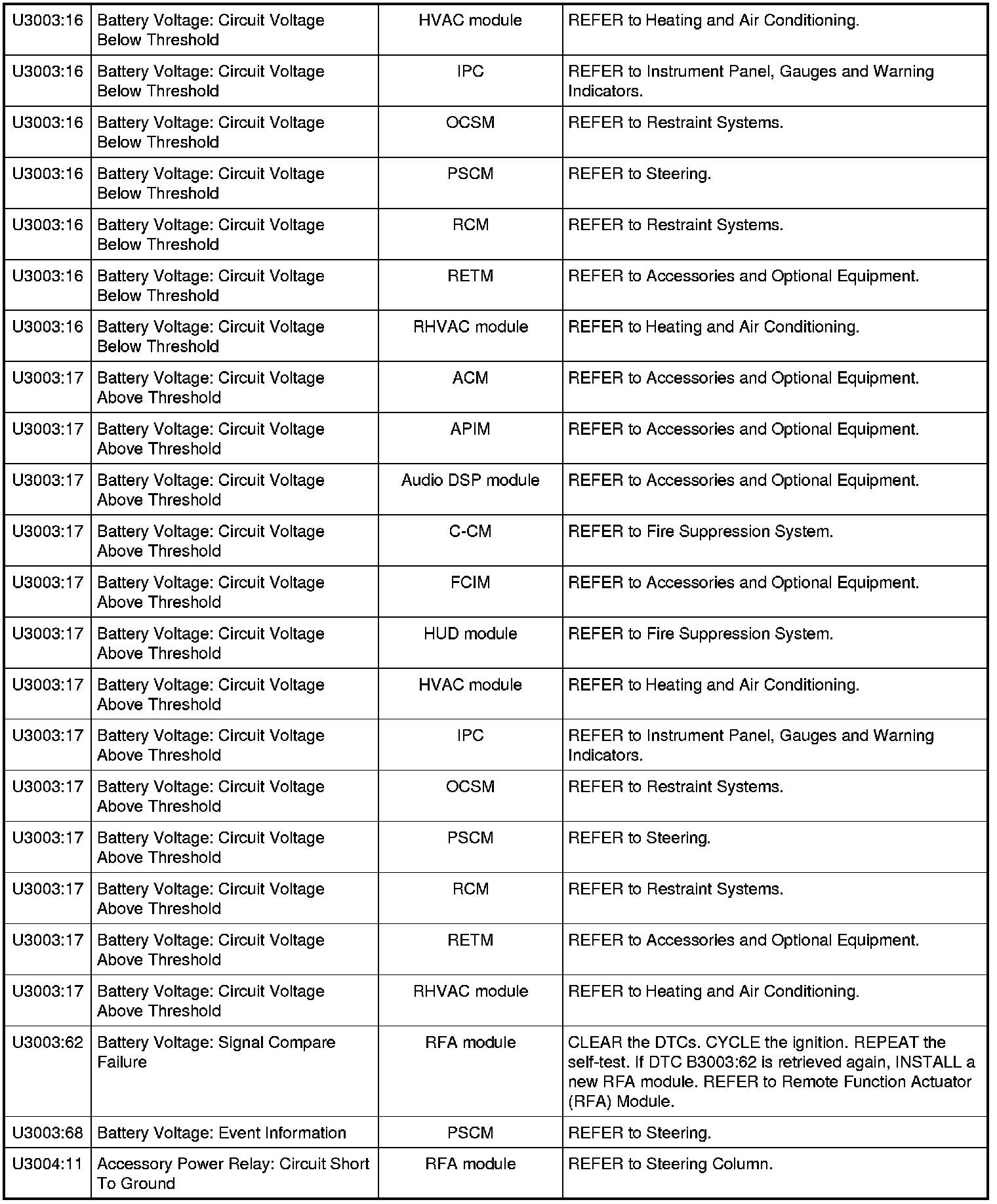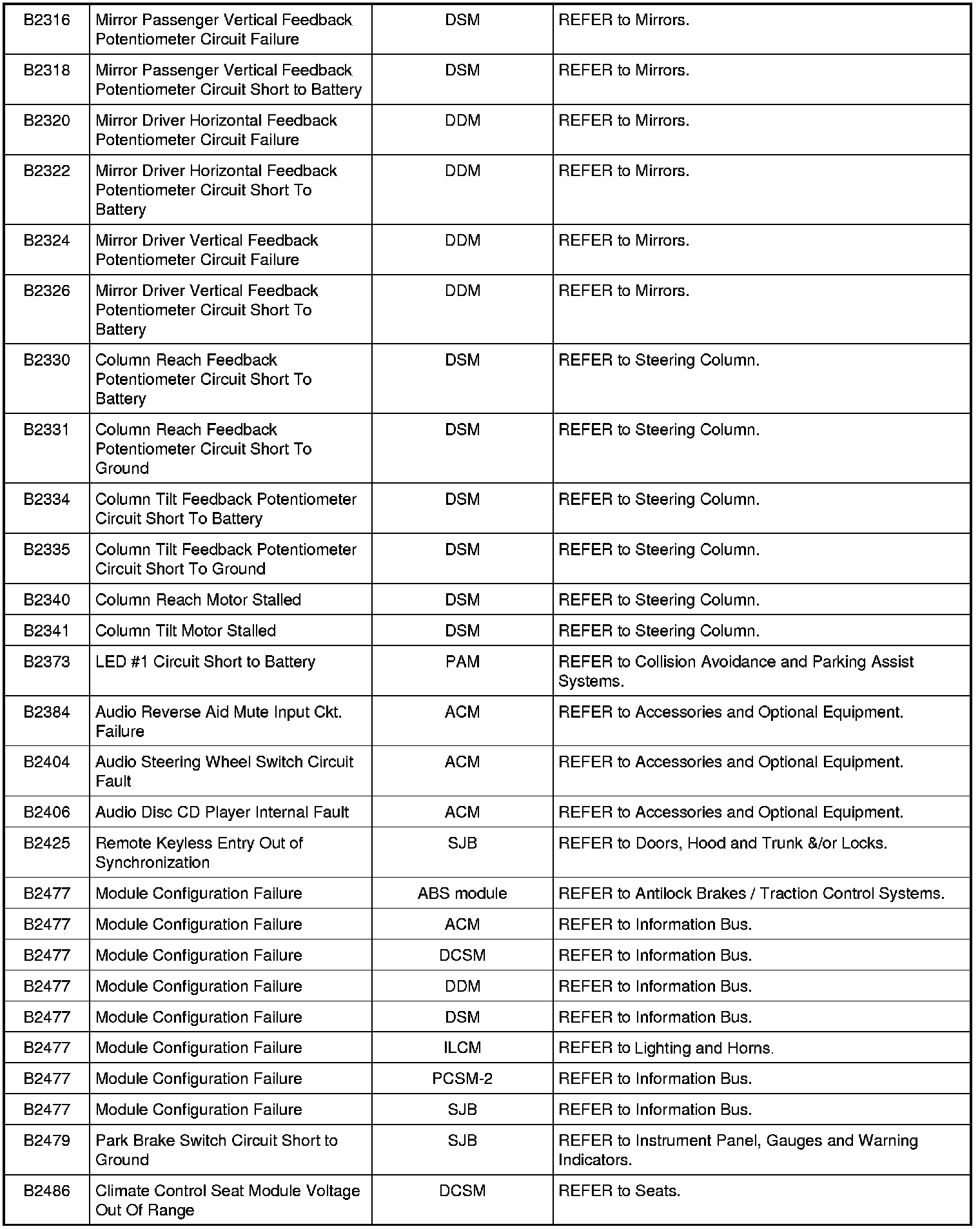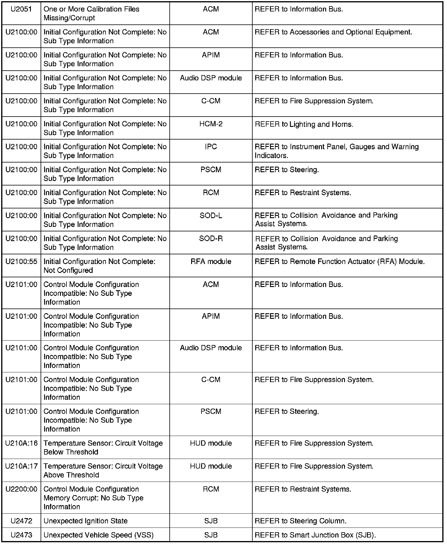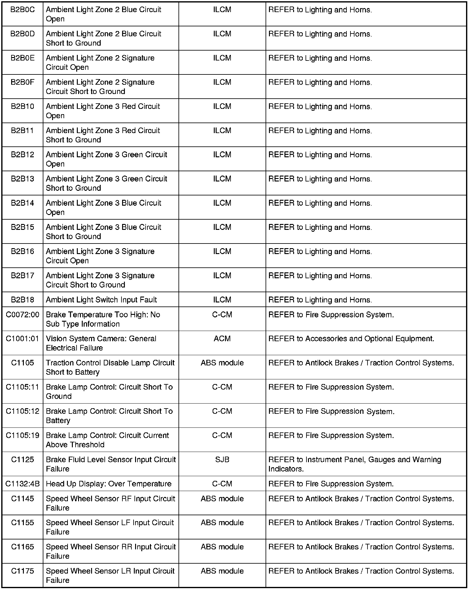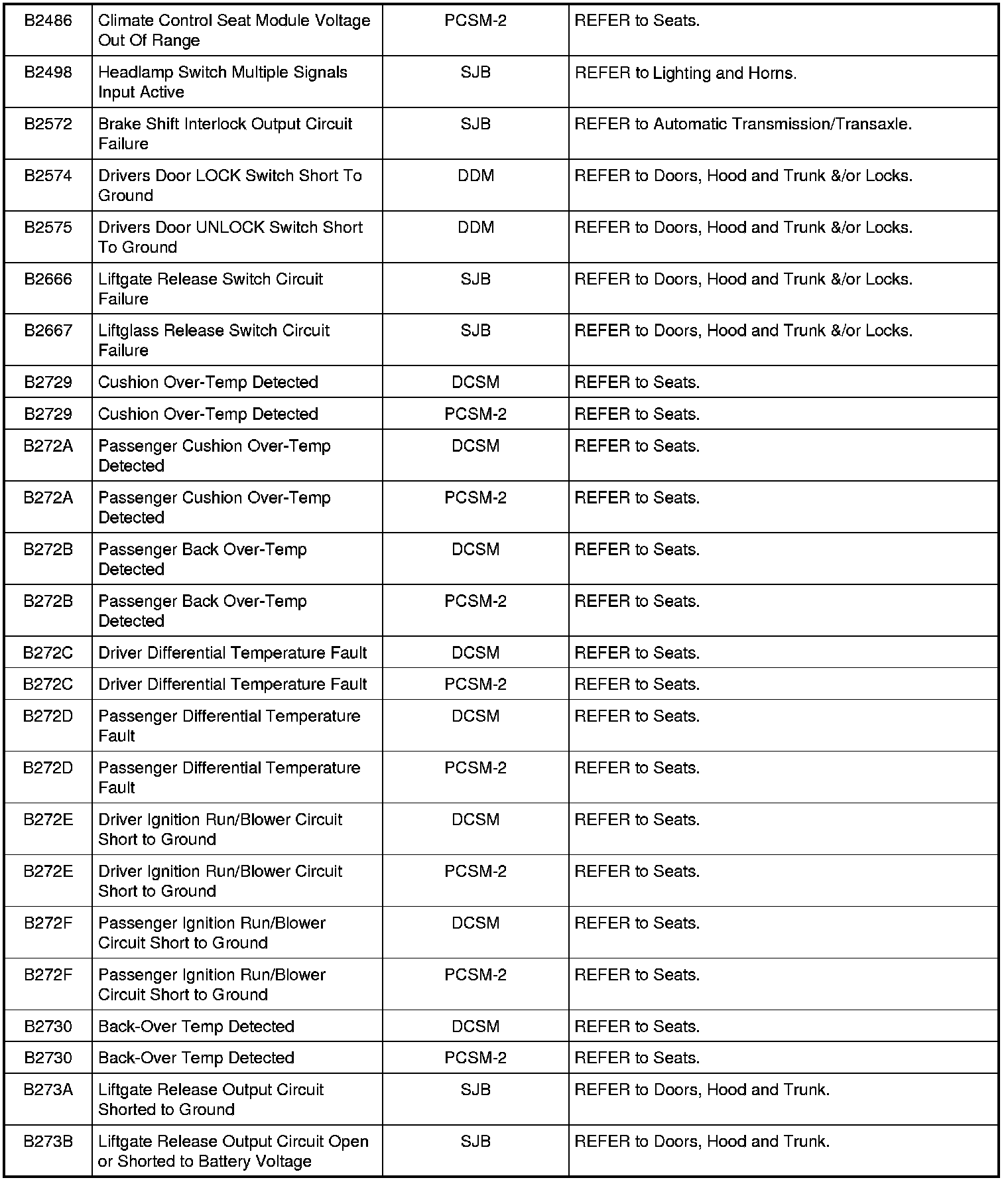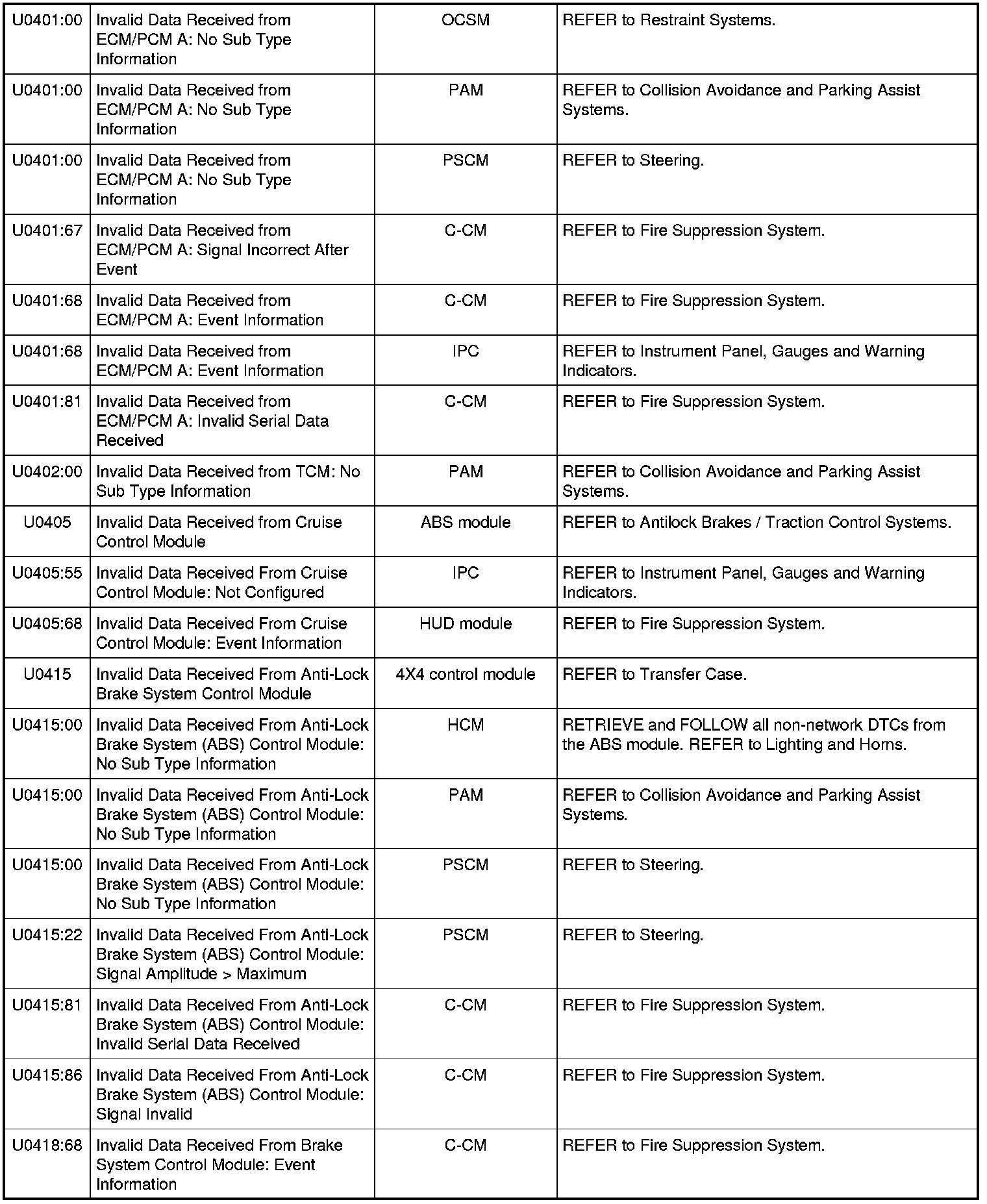 NOTE: Some of these modules utilize a 5-character DTC followed by a 2-character failure-type code. The failure-type code provides information about specific fault conditions such as opens, or shorts to ground. Continuous memory DTCs have an additional 2-character DTC status code suffix to assist in determining DTC history.