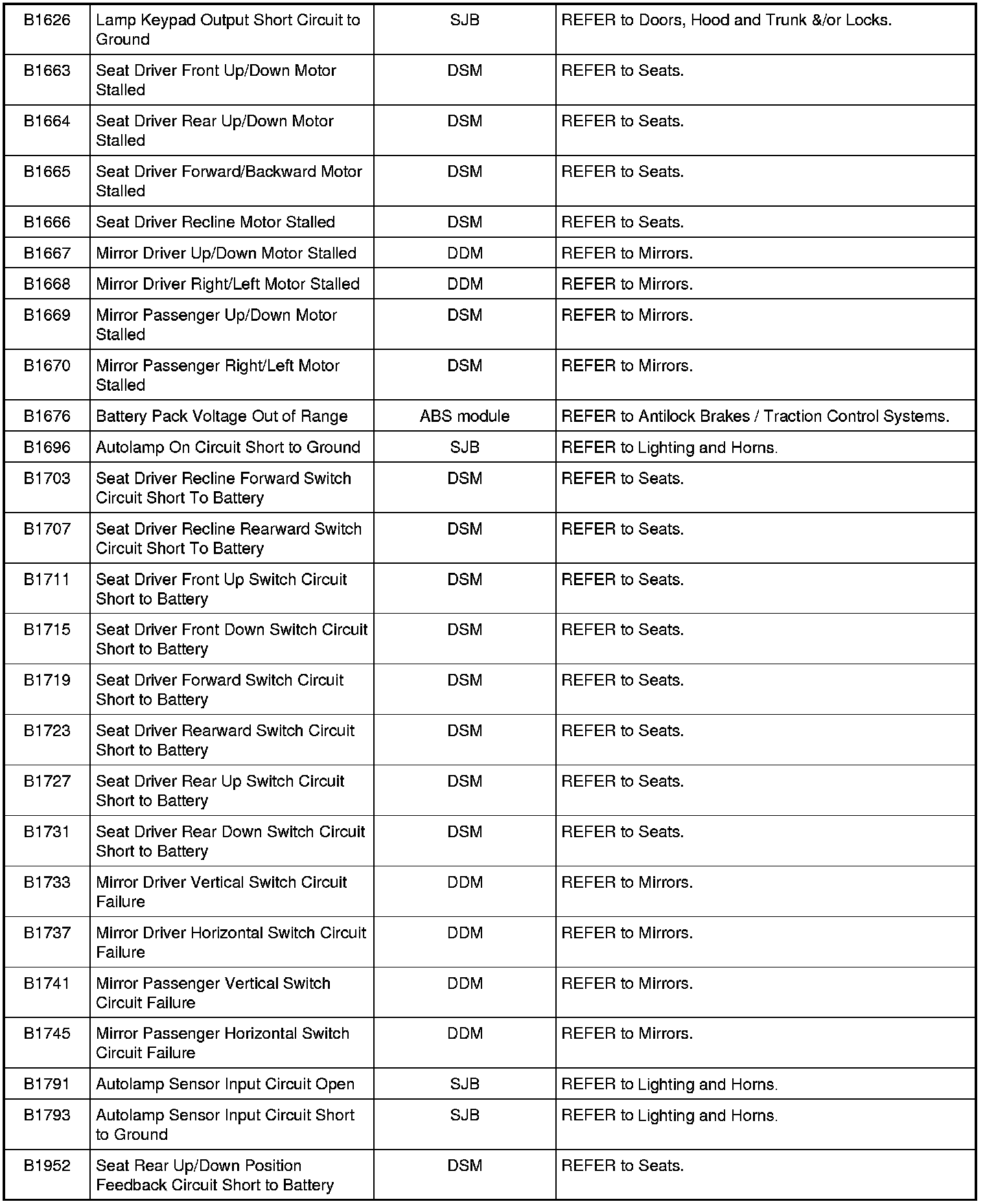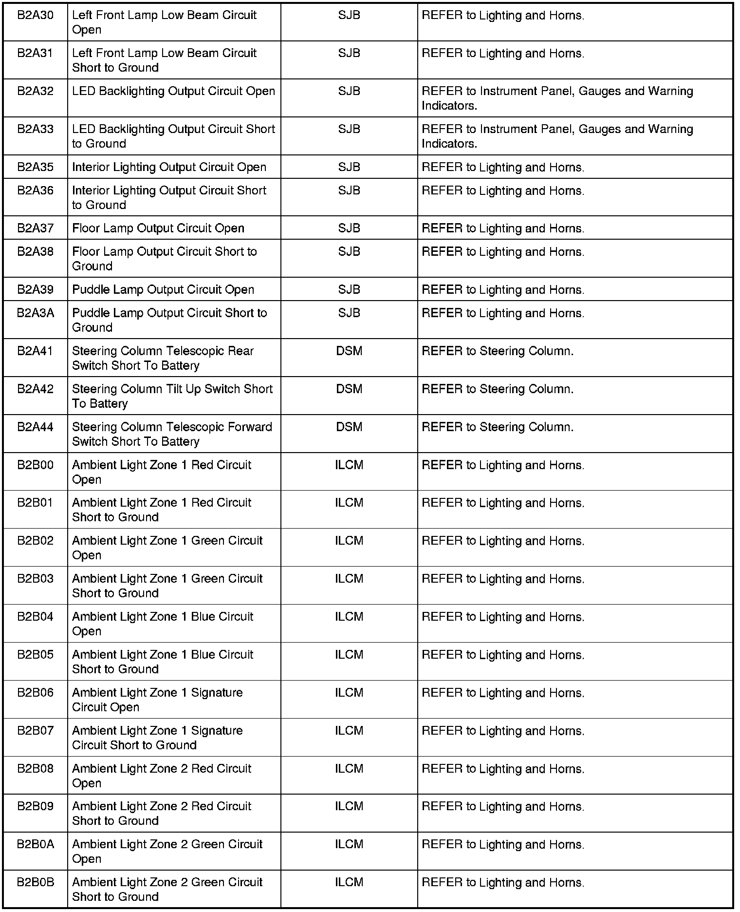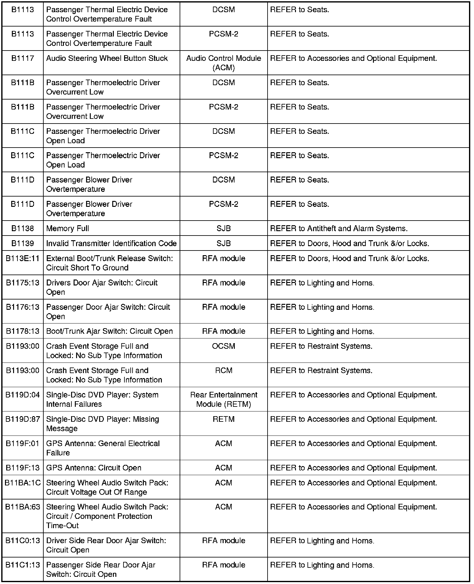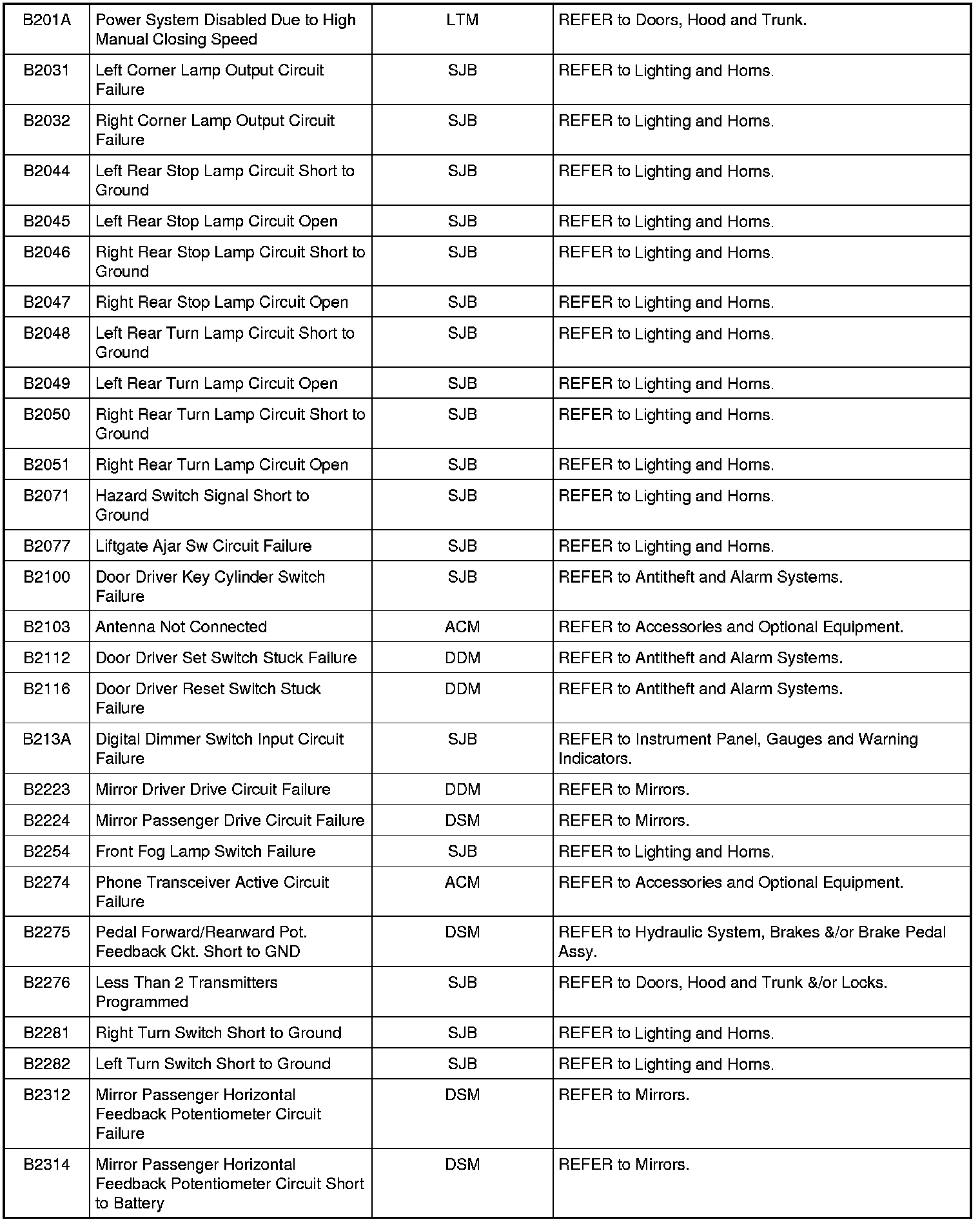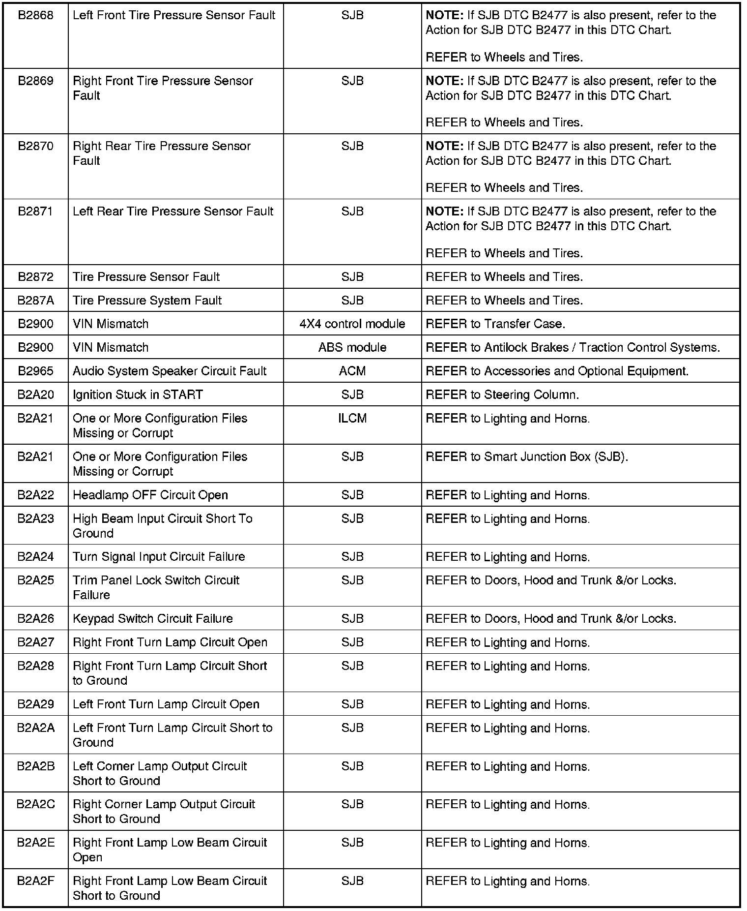 NOTE: Some of these modules utilize a 5-character DTC followed by a 2-character failure-type code. The failure-type code provides information about specific fault conditions such as opens, or shorts to ground. Continuous memory DTCs have an additional 2-character DTC status code suffix to assist in determining DTC history.