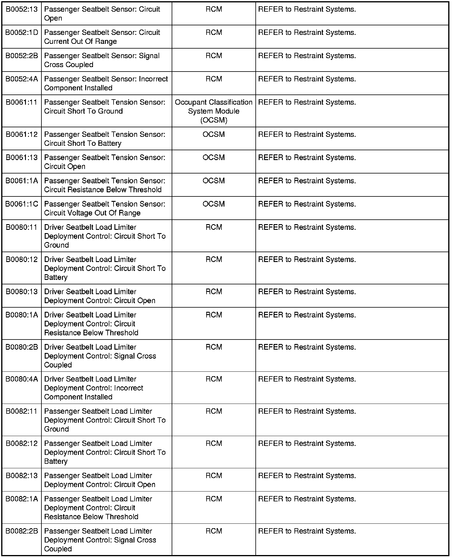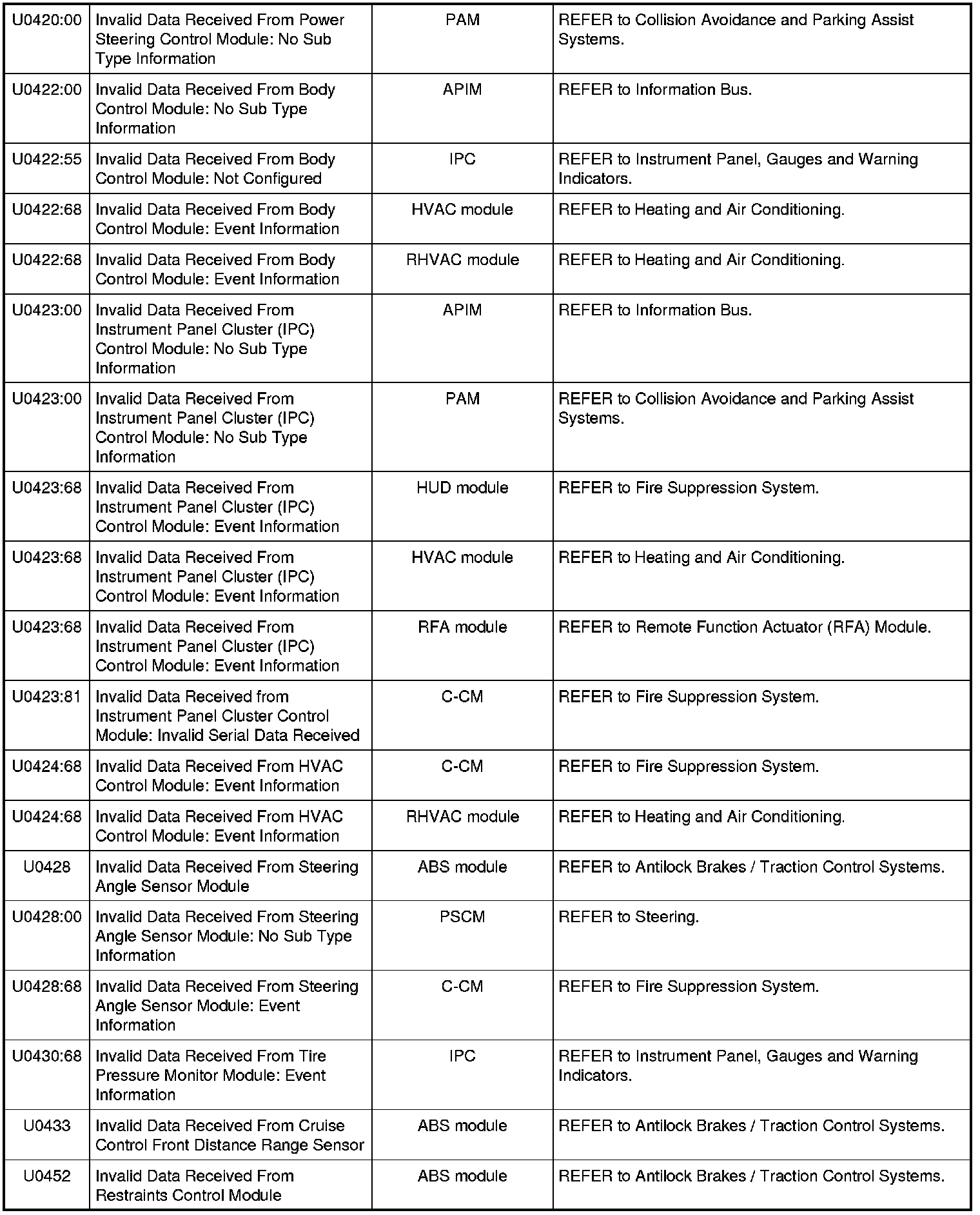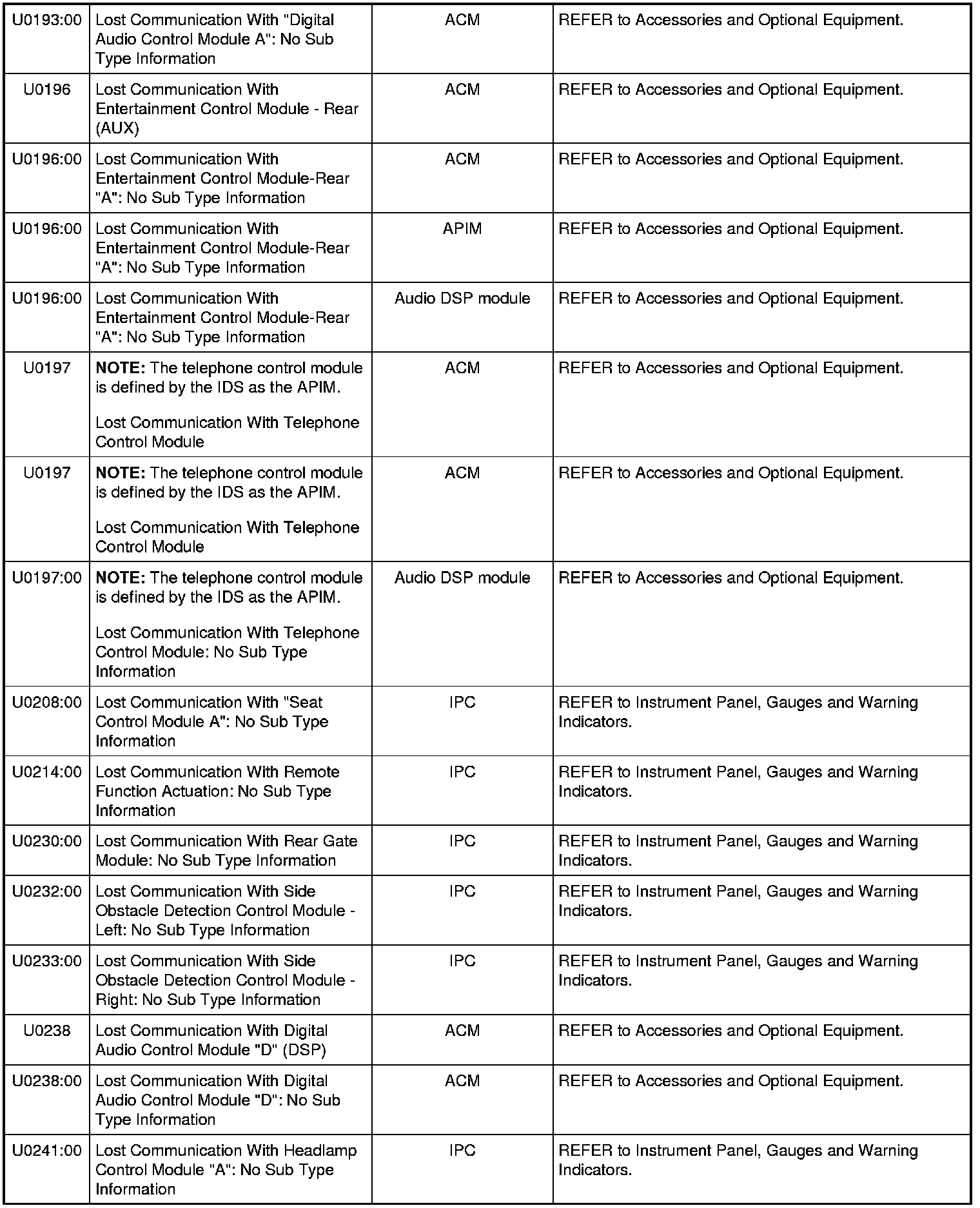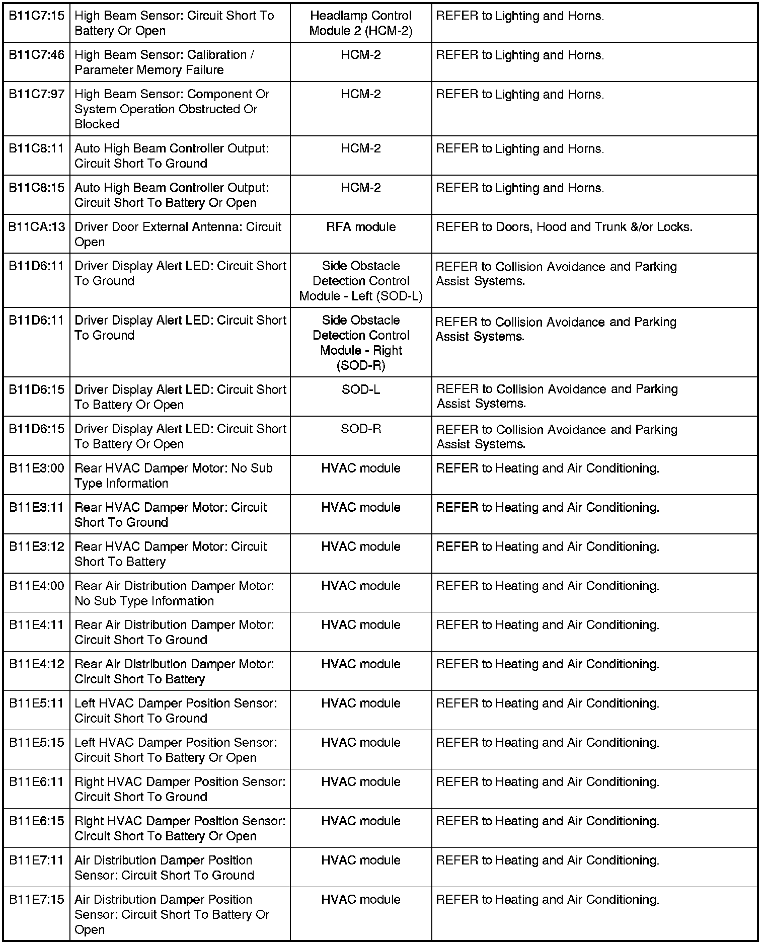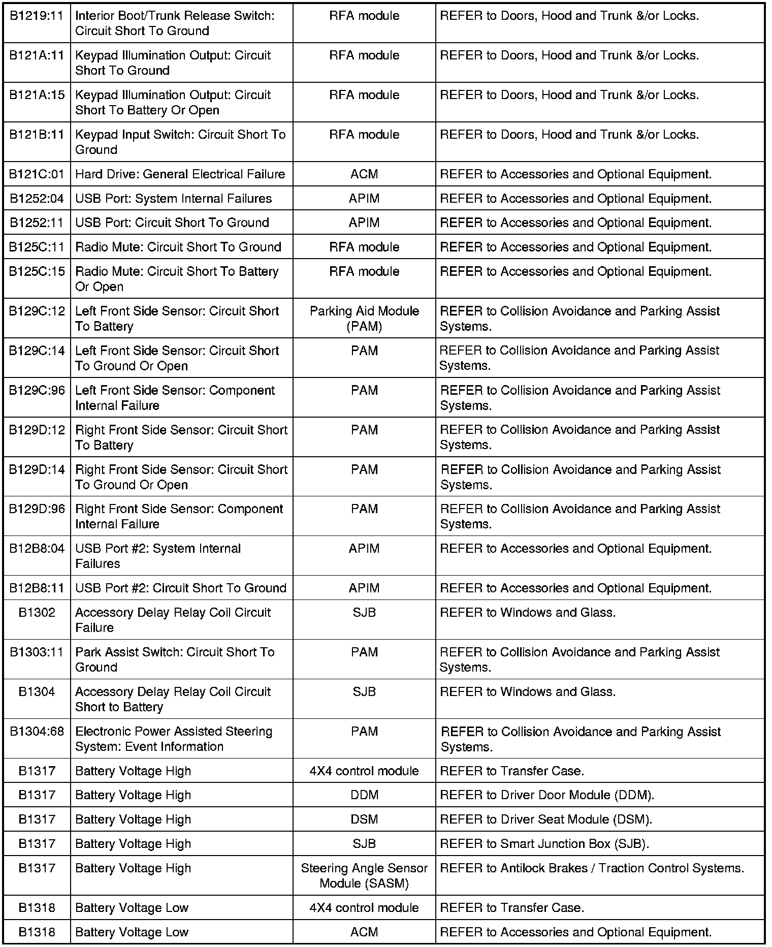 NOTE: Some of these modules utilize a 5-character DTC followed by a 2-character failure-type code. The failure-type code provides information about specific fault conditions such as opens, or shorts to ground. Continuous memory DTCs have an additional 2-character DTC status code suffix to assist in determining DTC history.