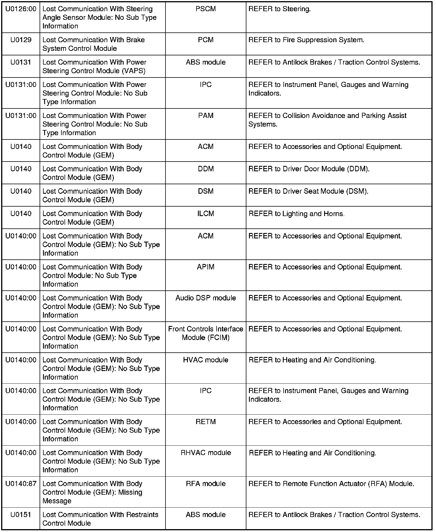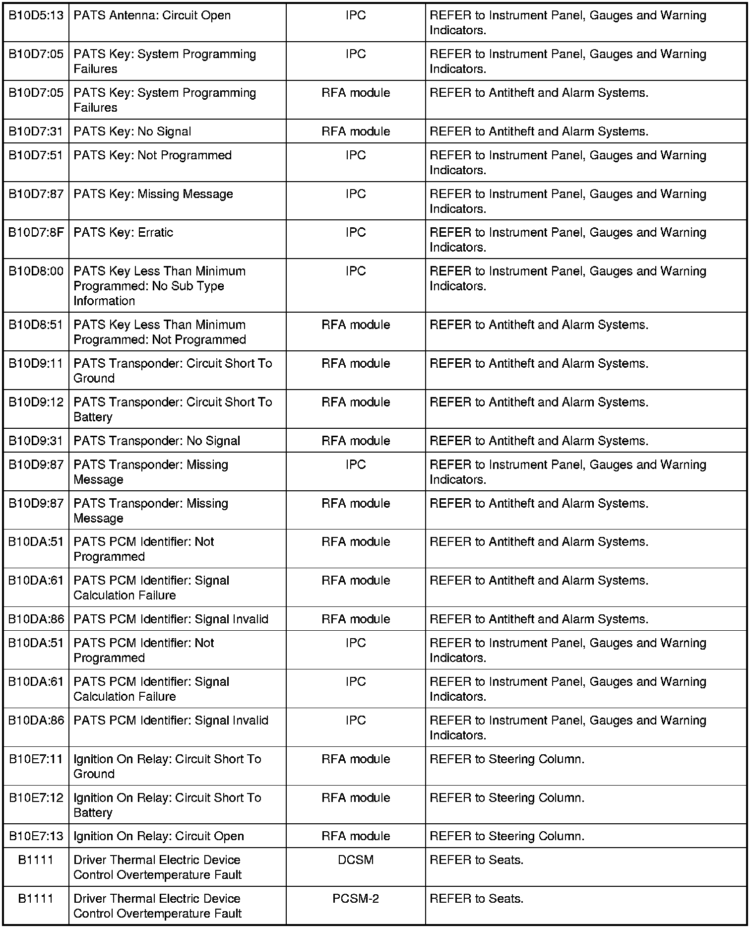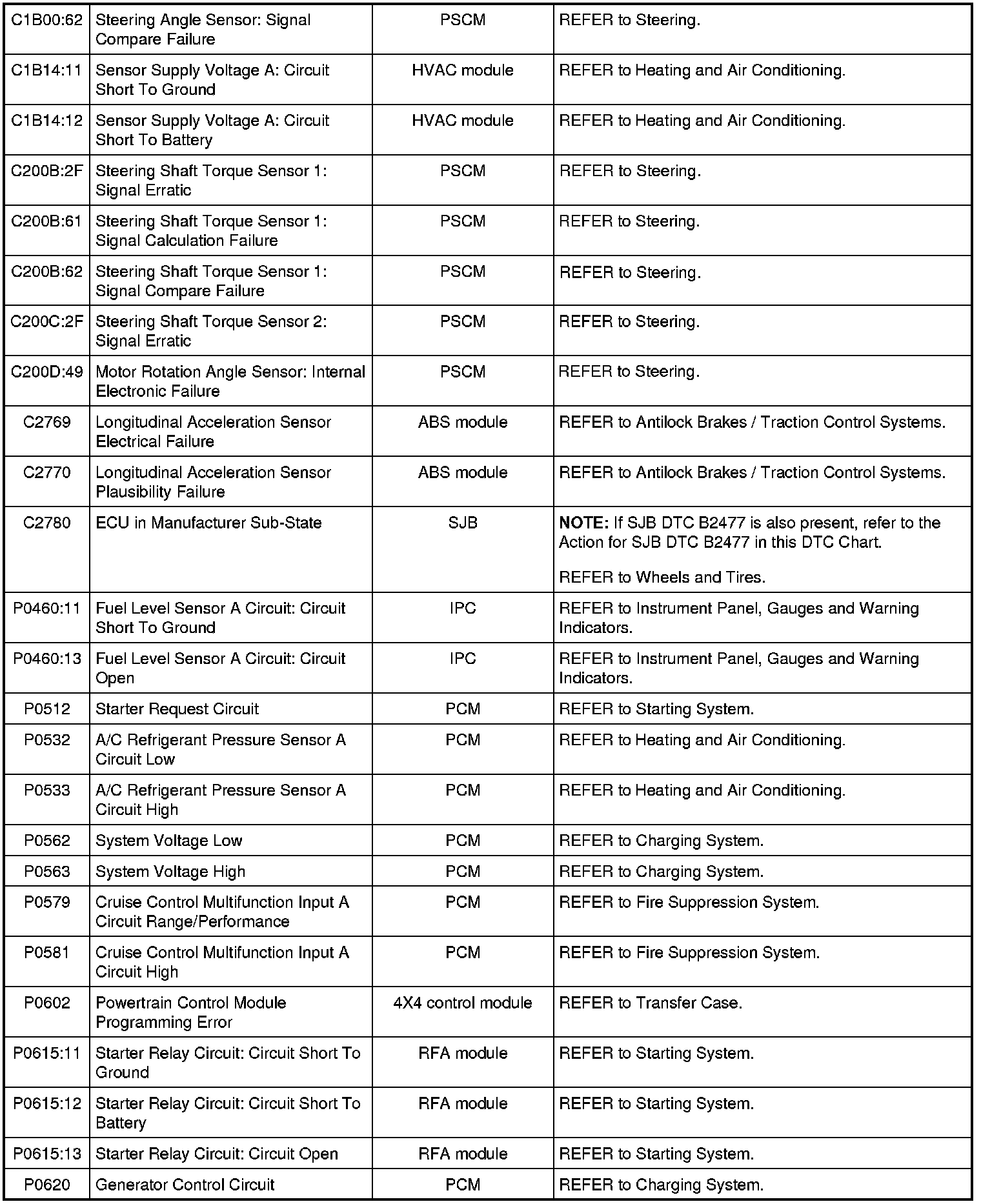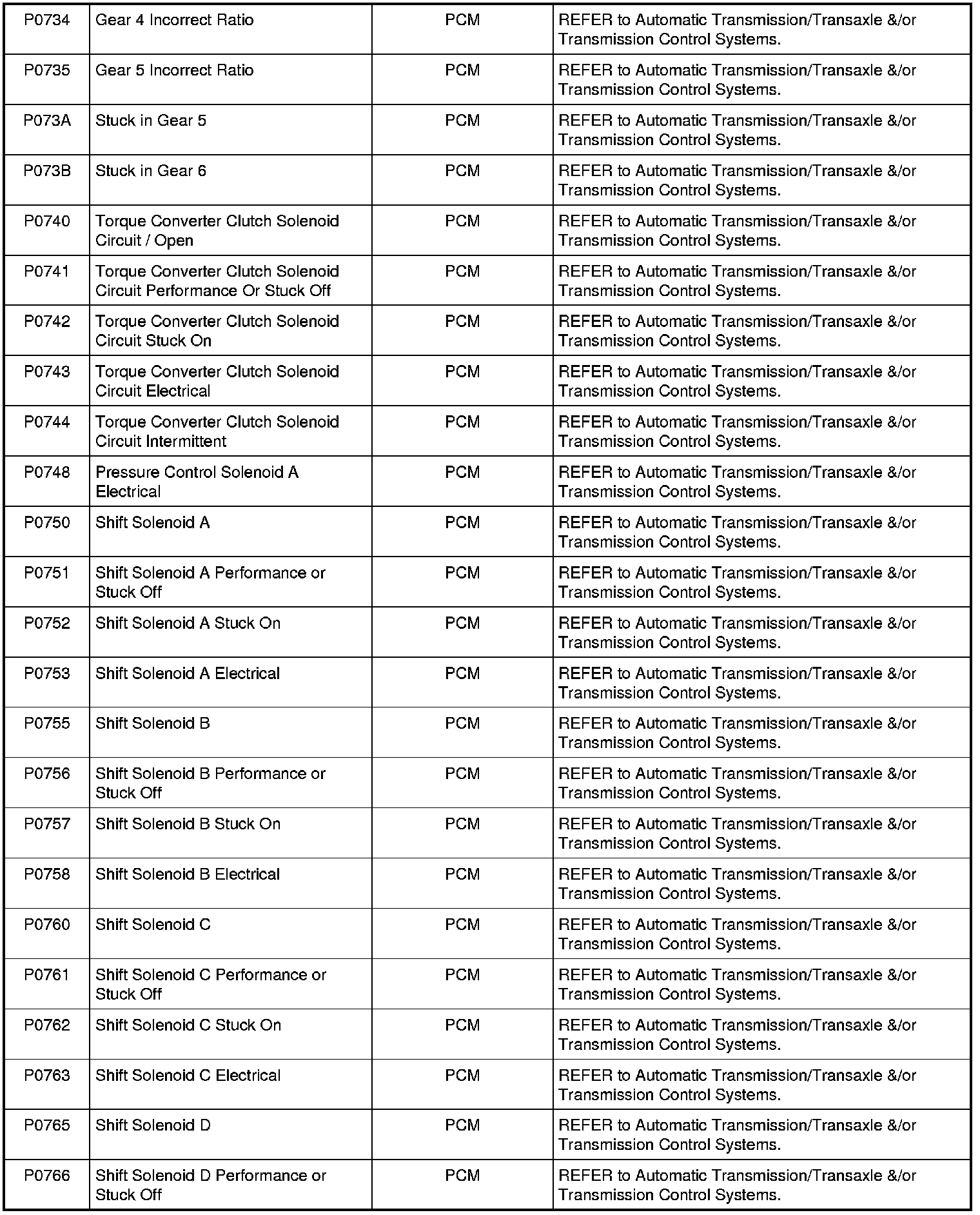 NOTE: Most powertrain (P-code) DTCs are diagnosed in Computers and Control Systems Information. If the P-code retrieved is not listed below, refer to Computers and Control Systems Information to continue diagnostics.