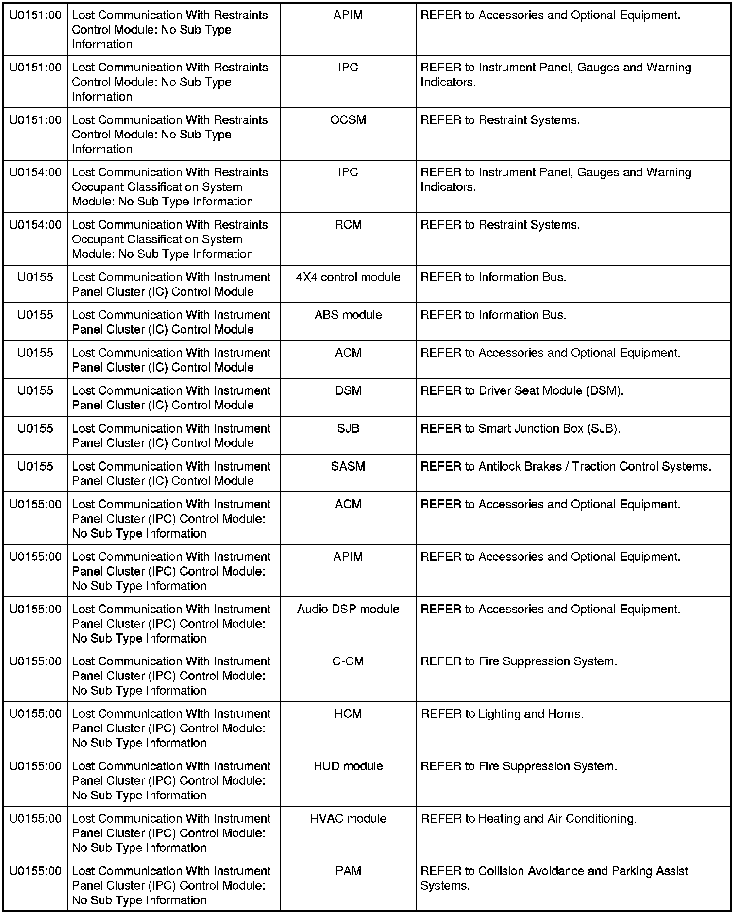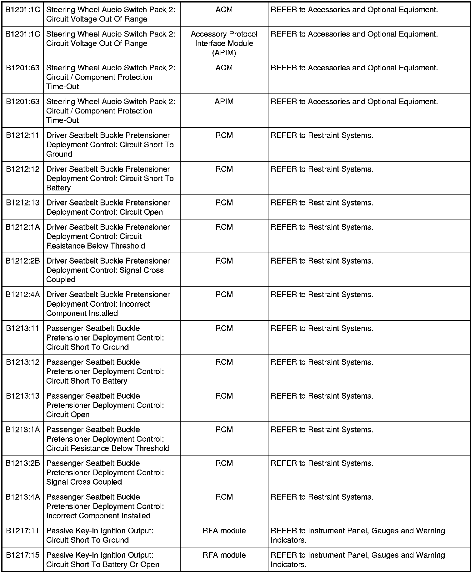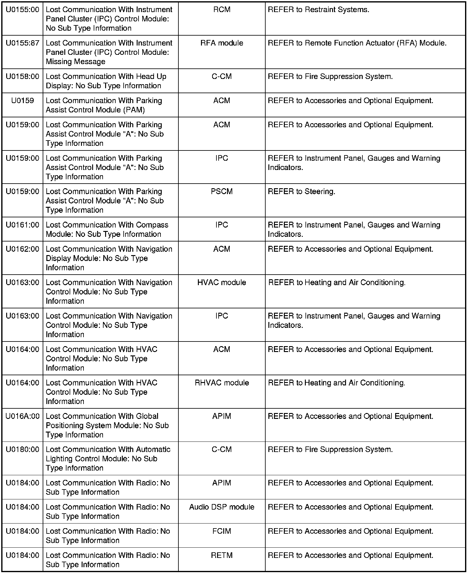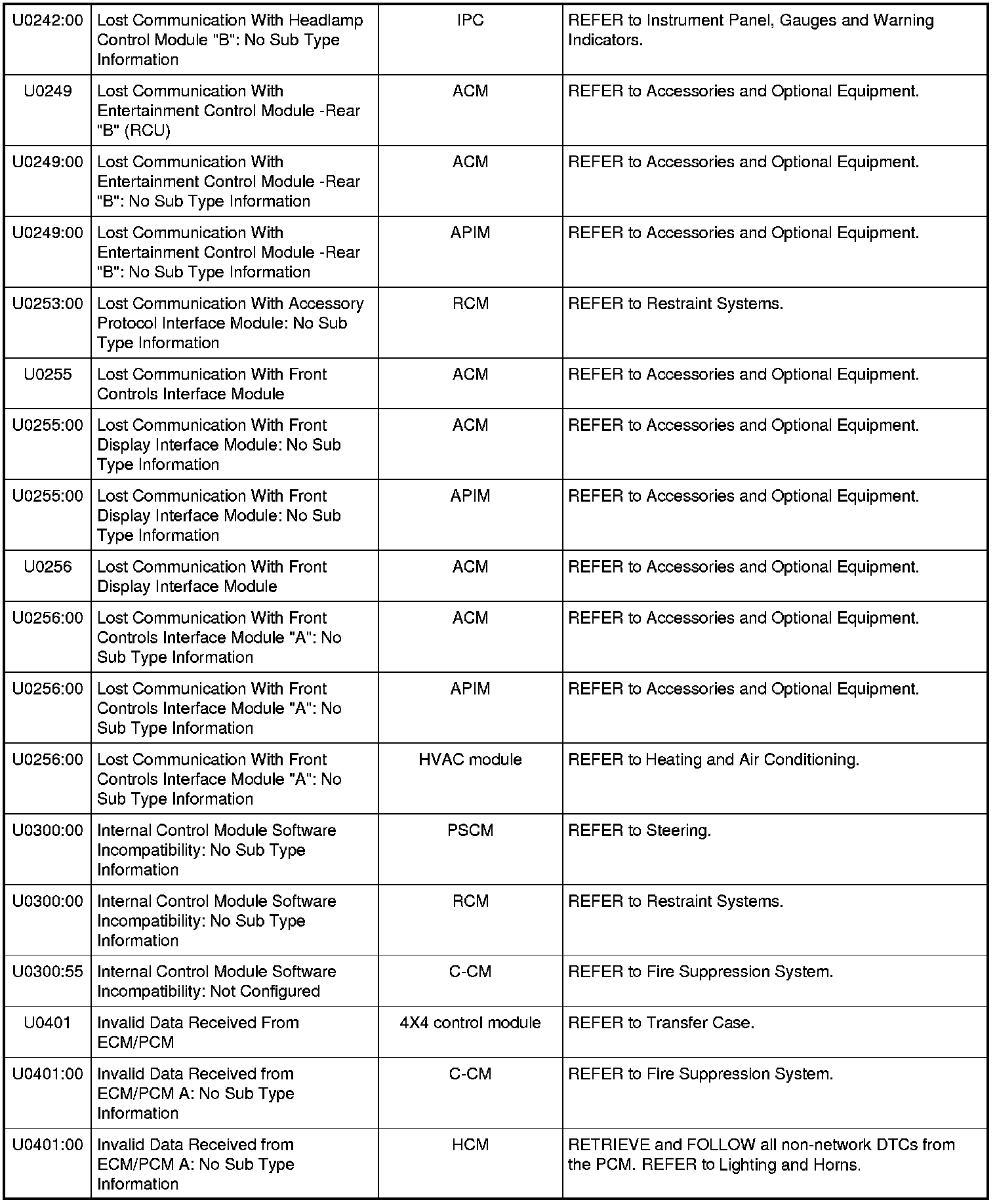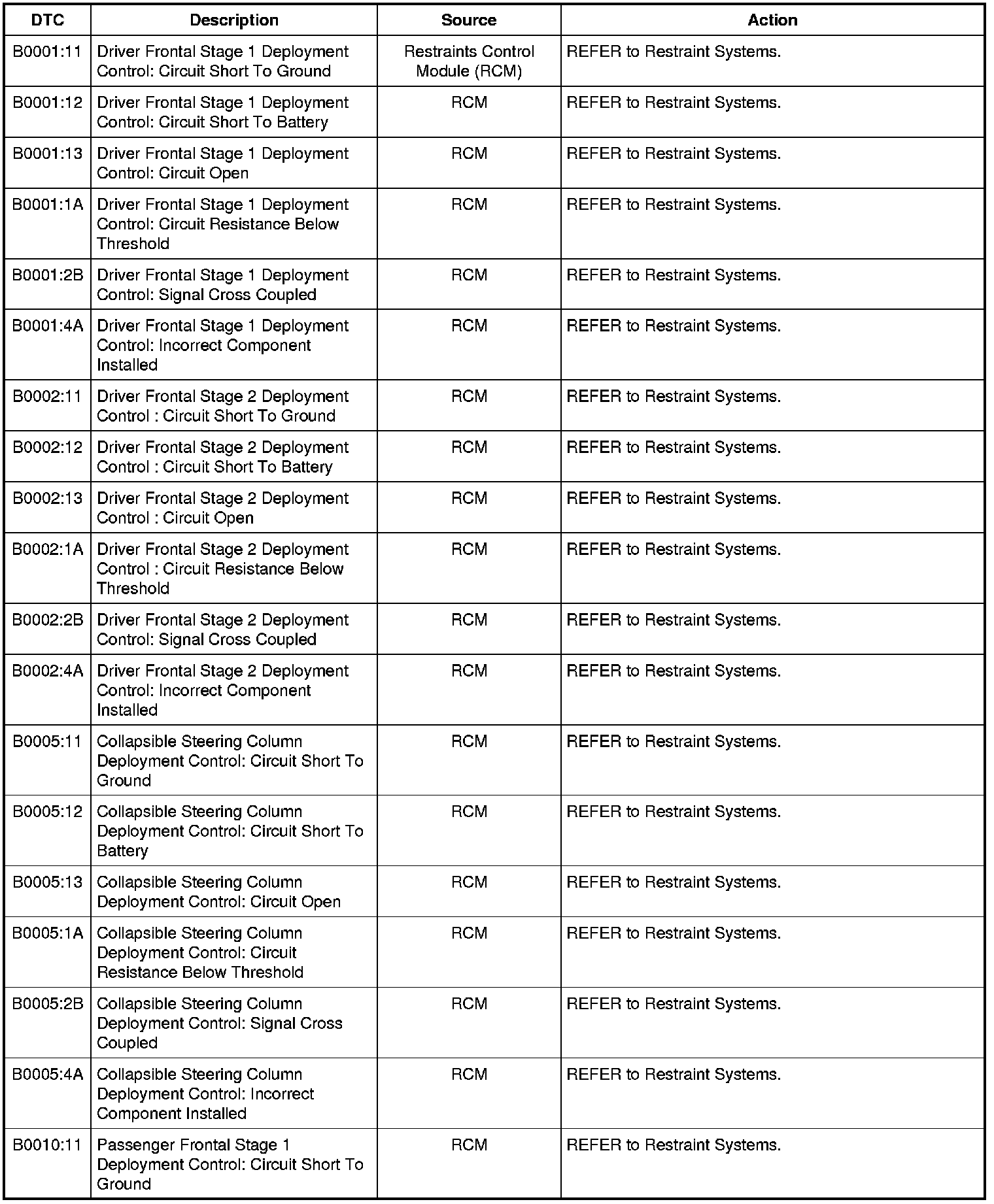 NOTE: Most powertrain (P-code) DTCs are diagnosed in Computers and Control Systems Information. If the P-code retrieved is not listed below, refer to Computers and Control Systems Information to continue diagnostics.