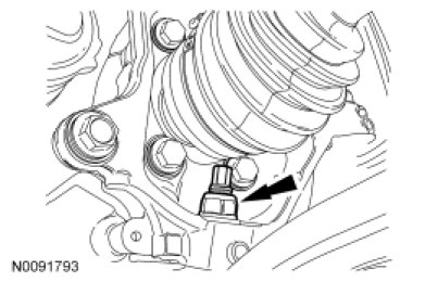 14. Remove the bolt and disconnect the 2 Electronic Power Assist Steering (EPAS) electrical connectors (1 shown) and the wiring retainer (not shown).