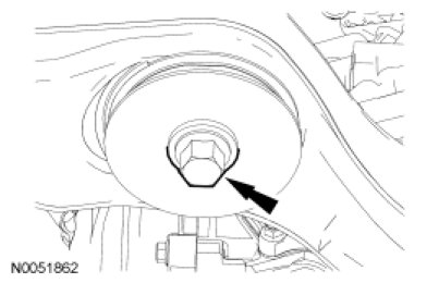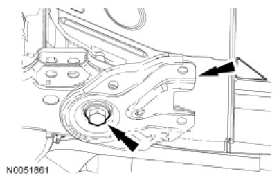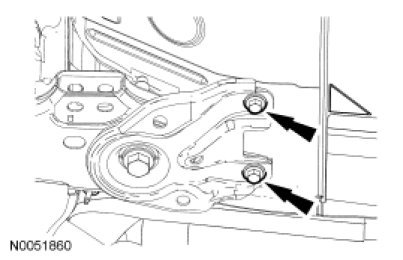 7. Remove and discard the stabilizer bar bracket-to-front subframe bolts.