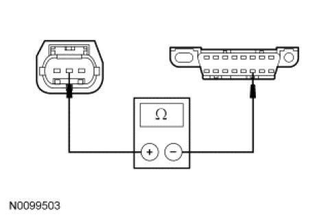 - Measure the resistance between the PSCM C1467a-1, circuit VDB04 (WH/BU), harness side and the DLC C251-6, circuit VDB04 (WH/BU), harness side.