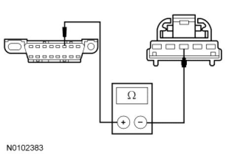 - Measure the resistance between the HUD module C2395-3, circuit VDB04 (WH/BU), harness side and the Data Link Connector (DLC) C251-6, circuit VDB04 (WH/BU), harness side.