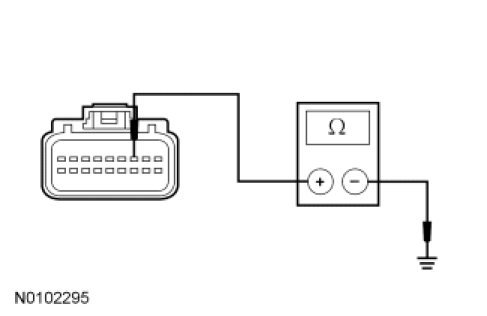 - Measure the resistance between the C-CM C1582-3, circuit GD120 (BK/GN), harness side and ground.