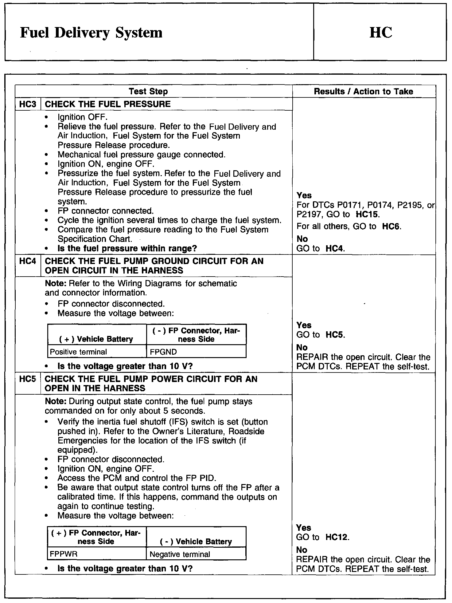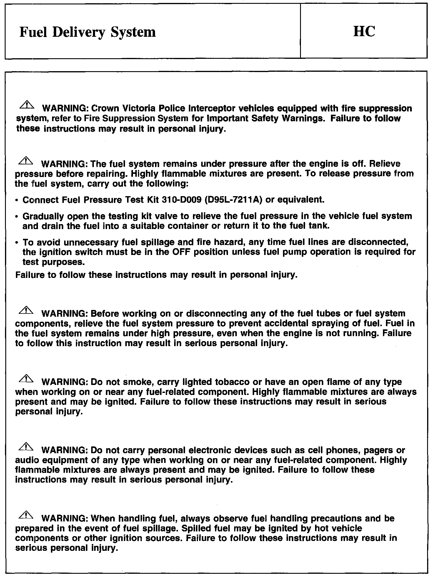 PINPOINT TEST HC: FUEL DELIVERY SYSTEMWarning: