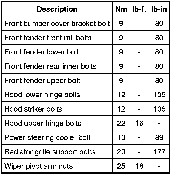 Torque Specifications