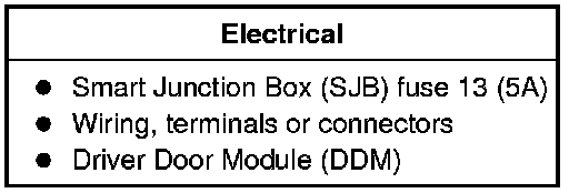 10. If no DTCs related to the concern are retrieved, GO to Symptom Chart. Driver Door Module (DDM)