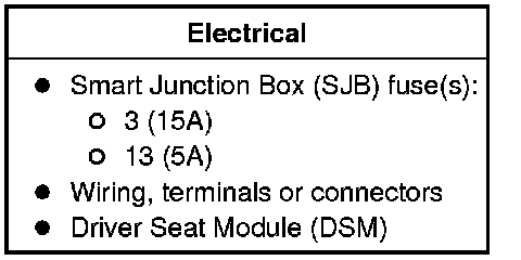 10. If no DTCs related to the concern are retrieved, GO to Symptom Chart. Driver Seat Module (DSM)