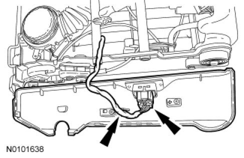 2. Separate the electrical connector from the front outboard seat track foot (if equipped), remove the 2 outboard inner cover screws and position the cover out of the way.