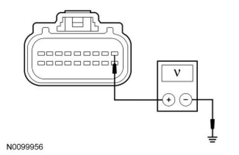 - Measure the voltage between the C-CM C1582-1, circuit SBB15 (WH/RD), harness side and ground.
