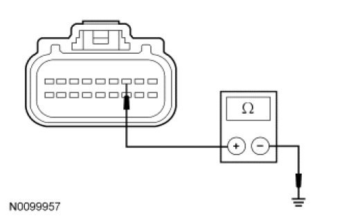 - Measure the resistance between the C-CM C1582-3, circuit GD120 (BK/GN), harness side and ground.