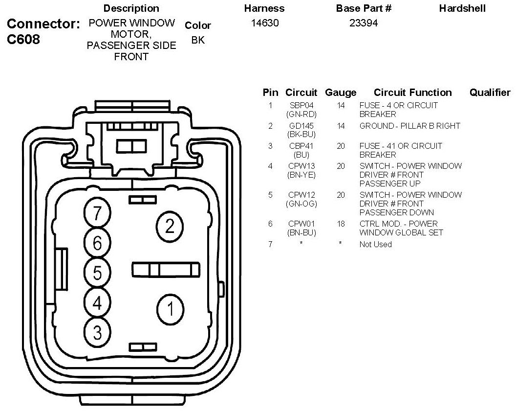 Power Window Motor, Passenger Side Front